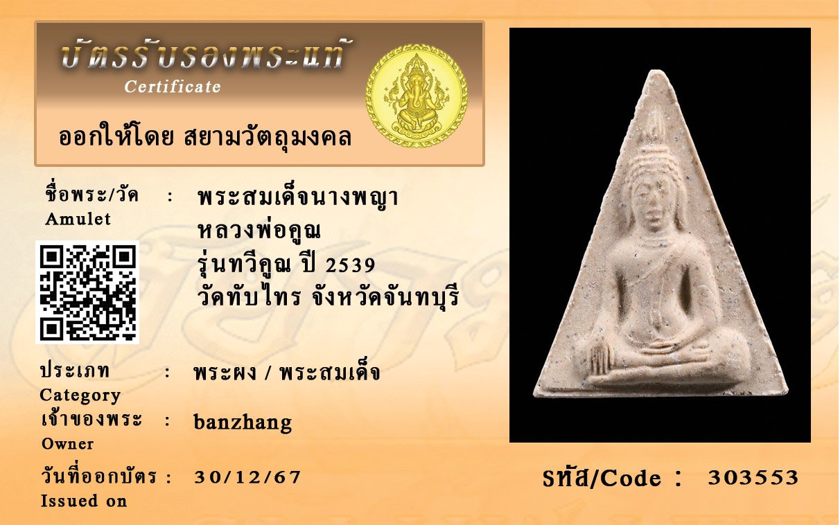 รหัสสินค้า : 303553 พระสมเด็จนางพญา หลวงพ่อคูณ รุ่นทวีคูณ ปี 2539 วัดทับไทร จังหวัดจันทบุรี