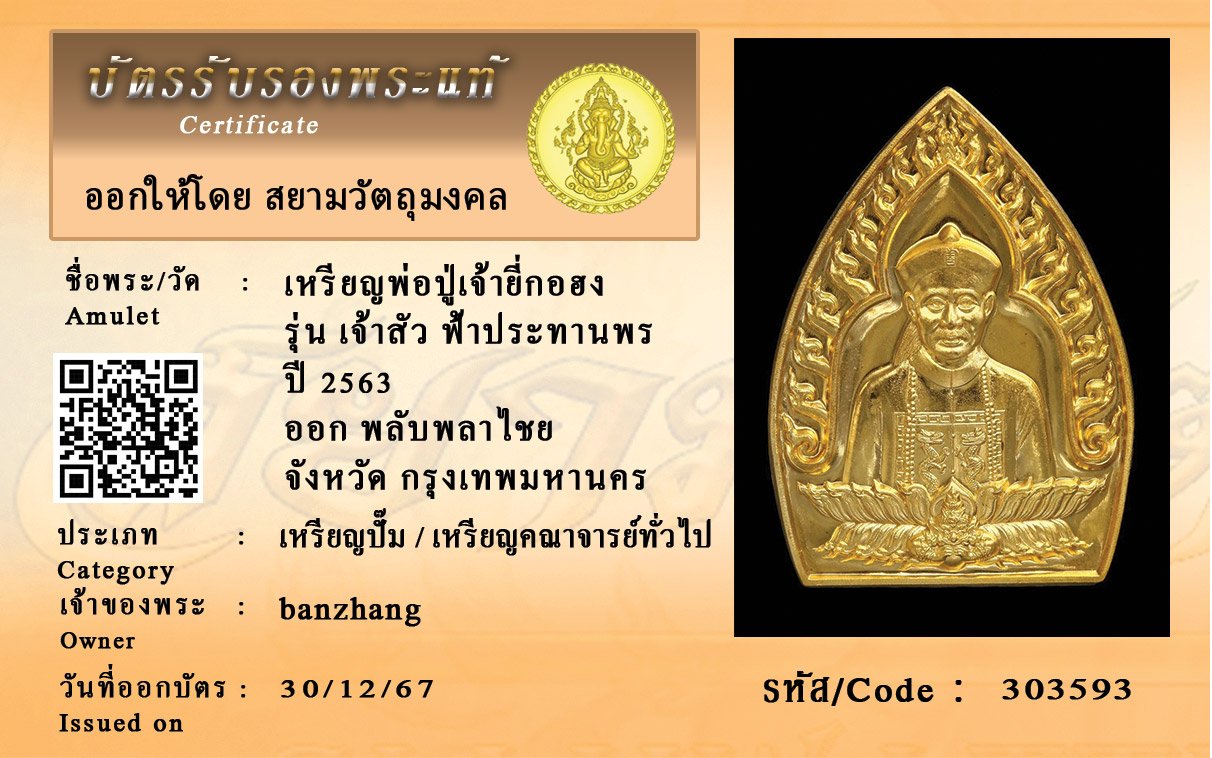รหัสสินค้า : 303593 เหรียญพ่อปู่เจ้ายี่กอฮง รุ่น เจ้าสัว ฟ้าประทานพร ปี 2563 ออก พลับพลาไชย จังหวัด กรุงเทพมหานคร