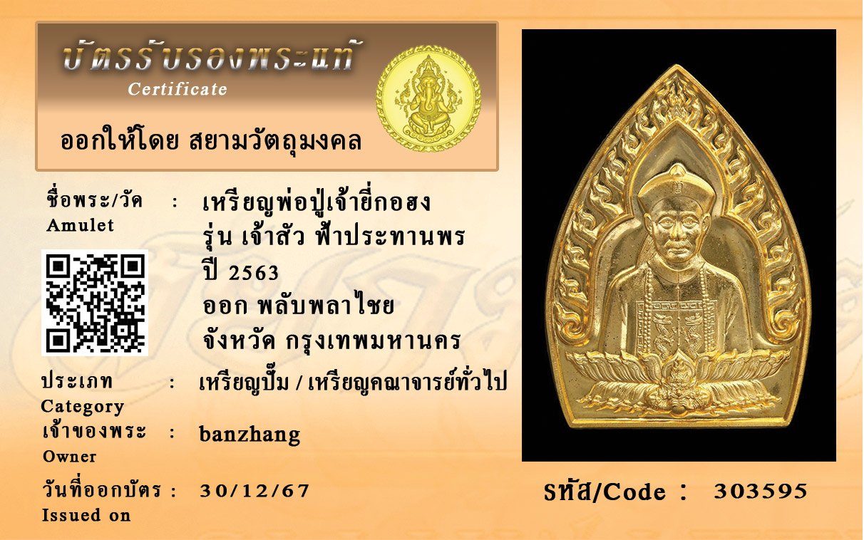 รหัสสินค้า : 303595 เหรียญพ่อปู่เจ้ายี่กอฮง รุ่น เจ้าสัว ฟ้าประทานพร ปี 2563 ออก พลับพลาไชย จังหวัด กรุงเทพมหานคร