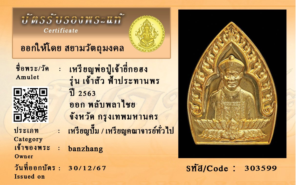 รหัสสินค้า : 303599 เหรียญพ่อปู่เจ้ายี่กอฮง รุ่น เจ้าสัว ฟ้าประทานพร ปี 2563 ออก พลับพลาไชย จังหวัด กรุงเทพมหานคร