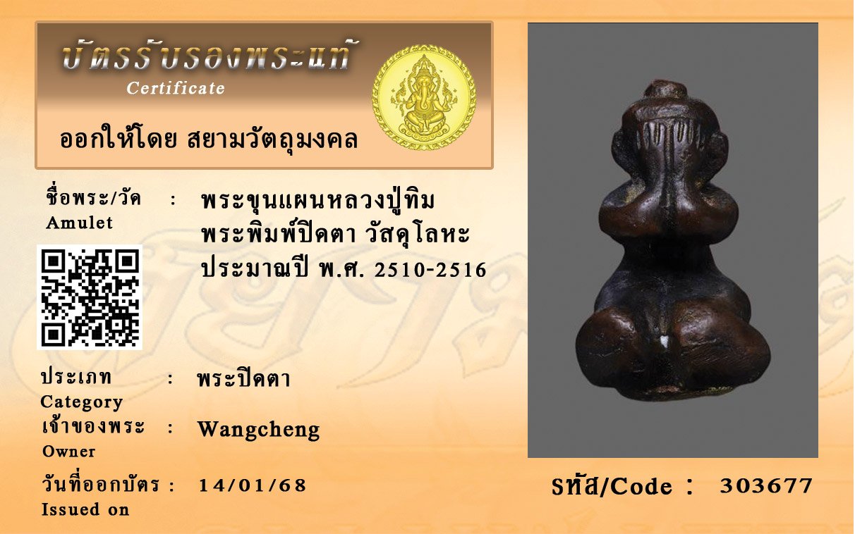 รหัสสินค้า : 303677 พระขุนแผนหลวงปู่ทิม พระพิมพ์ปิดตา วัสดุโลหะ ประมาณปี พ.ศ. 2510-2516