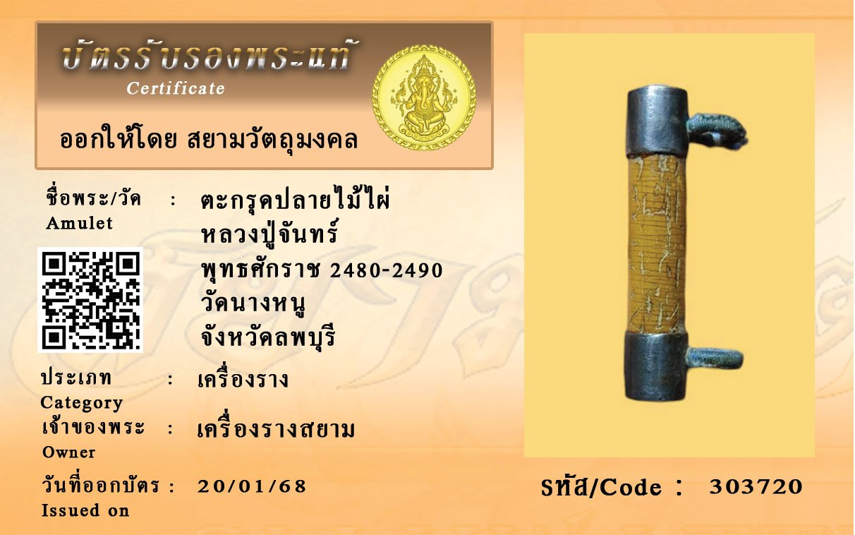 รหัสสินค้า : 303720 ตะกรุดปลายไม้ไผ่ หลวงปู่จันทร์ พุทธศักราช 2480-2490 วัดนางหนู จังหวัดลพบุรี
