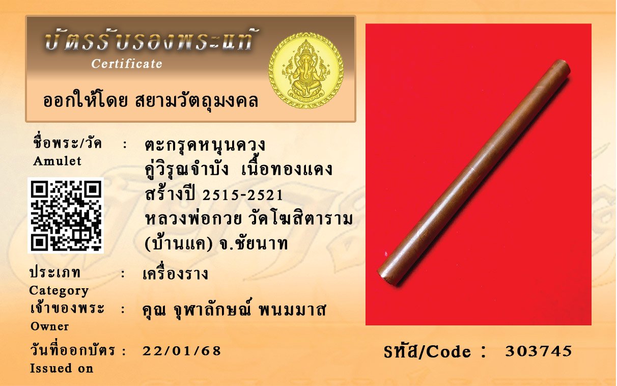 รหัสสินค้า : 303745 ตะกรุดหนุนดวง คู่วิรุณจำบัง เนื้อทองแดง สร้างปี 2515-2521 หลวงพ่อกวย วัดโฆสิตาราม (บ้านแค) จ.ชัยนาท
