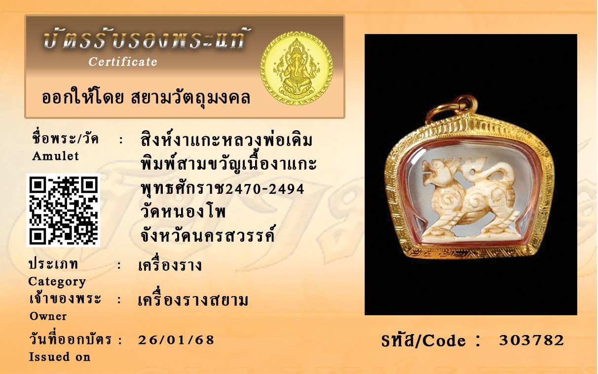 รหัสสินค้า : 303782 สิงห์งาแกะหลวงพ่อเดิม พิมพ์สามขวัญเนื้องาแกะ พุทธศักราช2470-2494 วัดหนองโพ จังหวัดนครสวรรค์