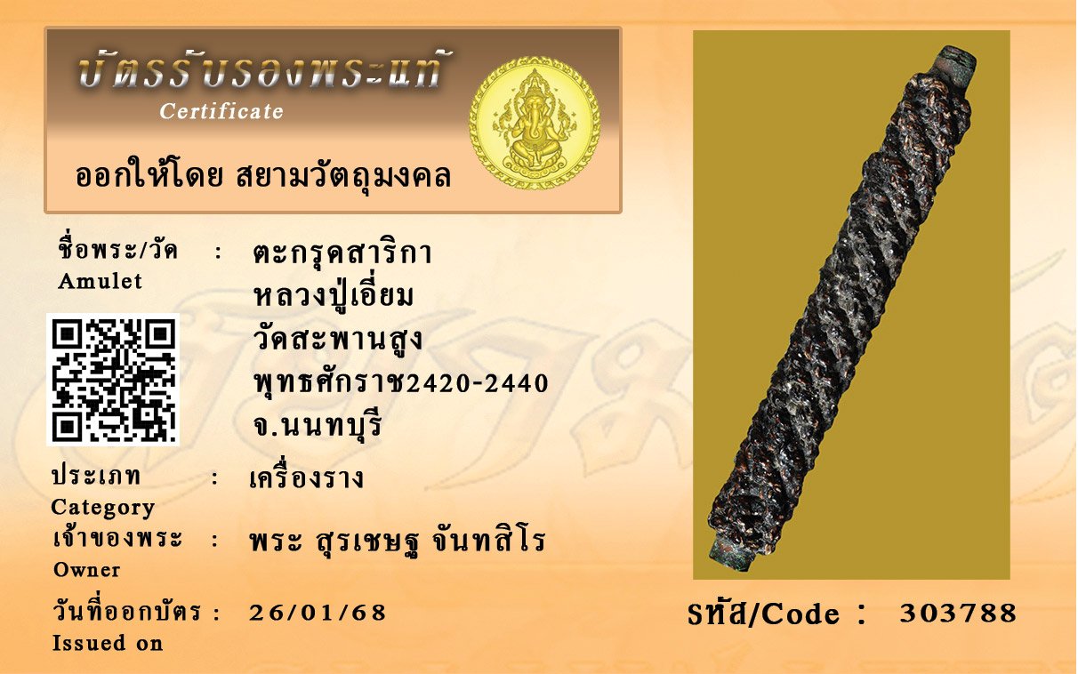 รหัสสินค้า : 303788 ตะกรุดสาริกา หลวงปู่เอี่ยม วัดสะพานสูง พุทธศักราช2420-2440 จ.นนทบุรี