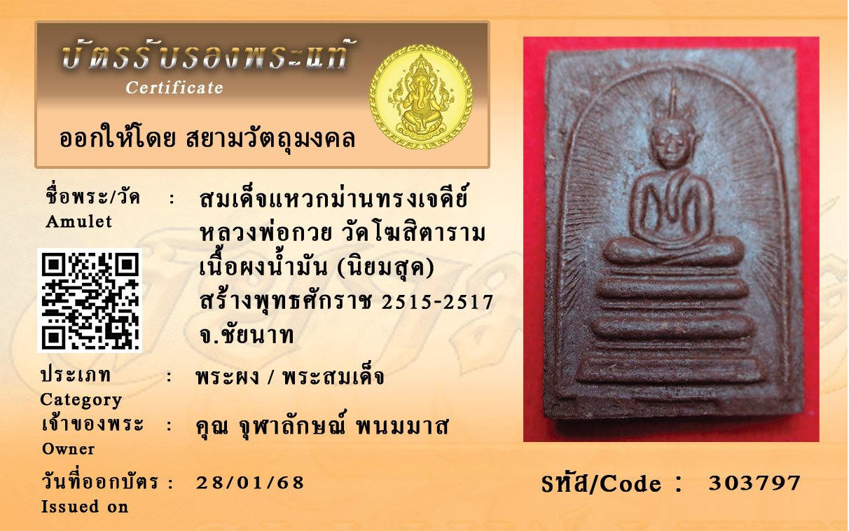 รหัสสินค้า : 303797 สมเด็จแหวกม่านทรงเจดีย์ หลวงพ่อกวย วัดโฆสิตาราม เนื้อผงน้ำมัน (นิยมสุด) สร้างพุทธศักราช 2515-2517 จ.ชัยนาท