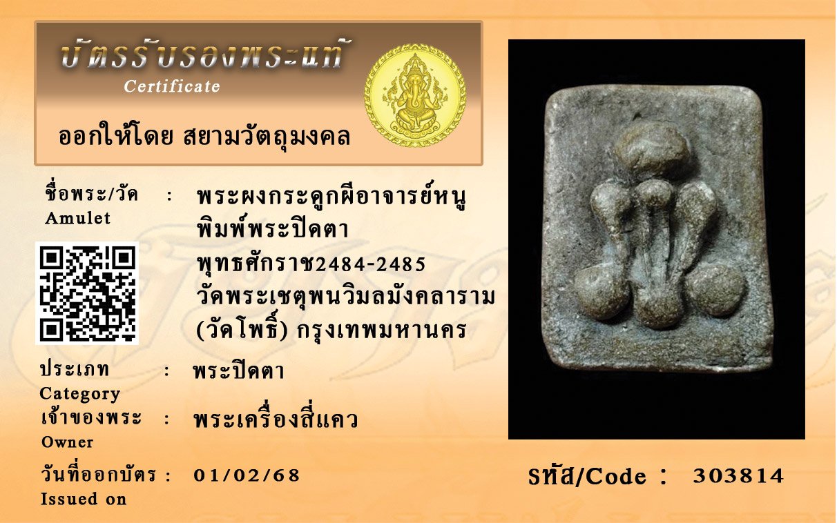 รหัสสินค้า : 303814 พระผงกระดูกผีอาจารย์หนู พิมพ์พระปิดตา พุทธศักราช2484-2485 วัดพระเชตุพนวิมลมังคลาราม (วัดโพธิ์) กรุงเทพมหานคร