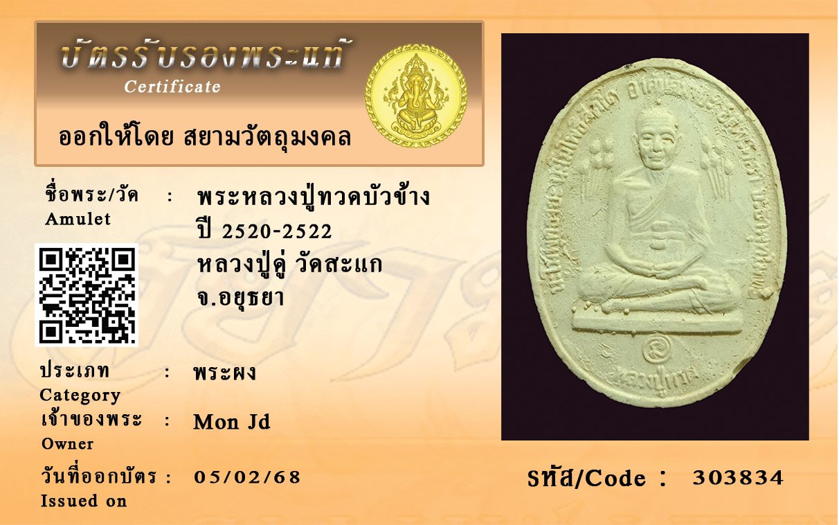 รหัสสินค้า : 303834 พระหลวงปู่ทวดบัวข้าง ปี 2520-2522 หลวงปู่ดู่ วัดสะแก จ.อยุธยา