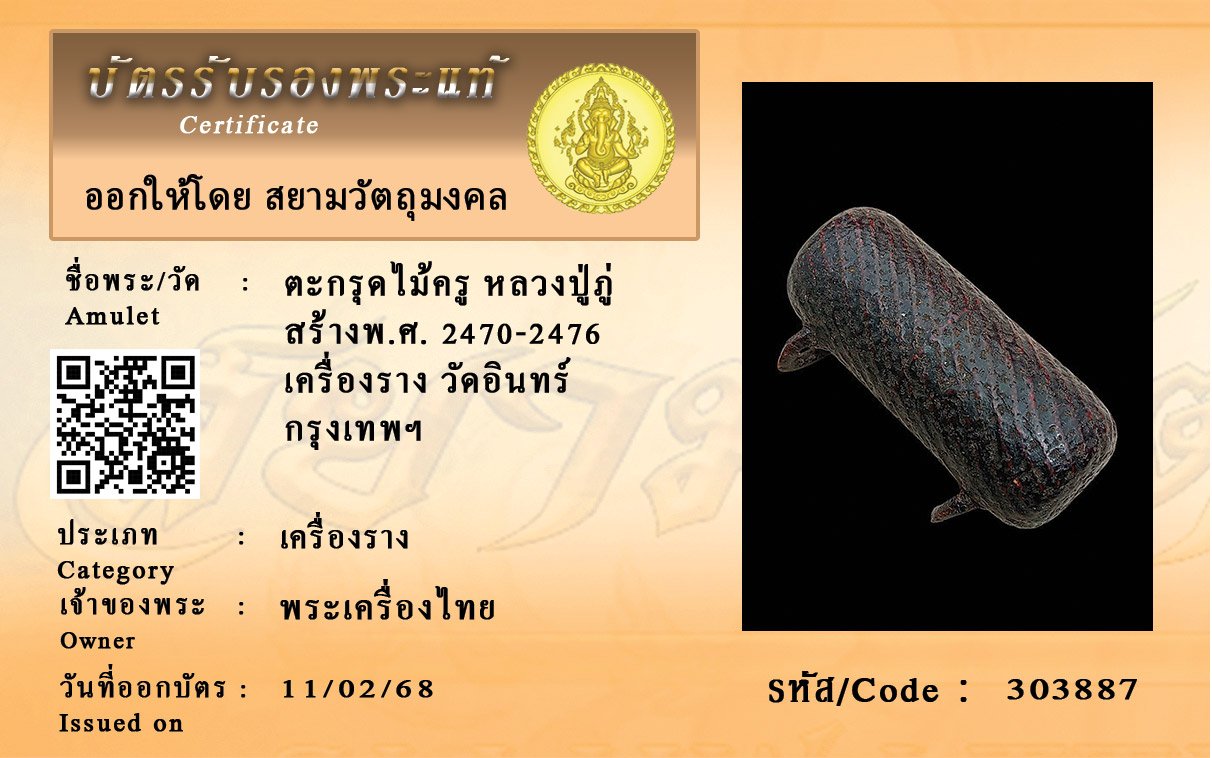 รหัสสินค้า : 303887 ตะกรุดไม้ครู หลวงปู่ภู่ สร้างพ.ศ. 2470-2476 เครื่องราง วัดอินทร์ กรุงเทพฯ