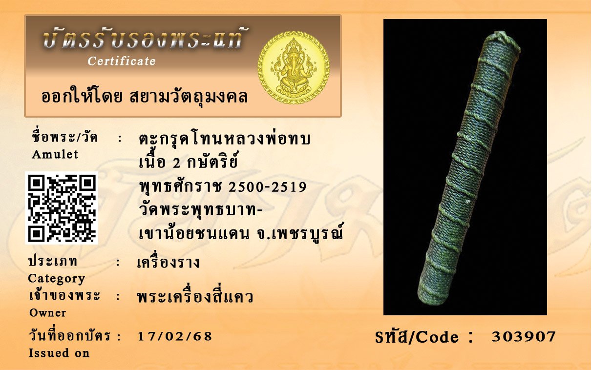 รหัสสินค้า : 303907 ตะกรุดโทนหลวงพ่อทบ เนื้อ 2 กษัตริย์ พุทธศักราช 2500-2519 วัดพระพุทธบาท- เขาน้อยชนแดน จ.เพชรบูรณ์