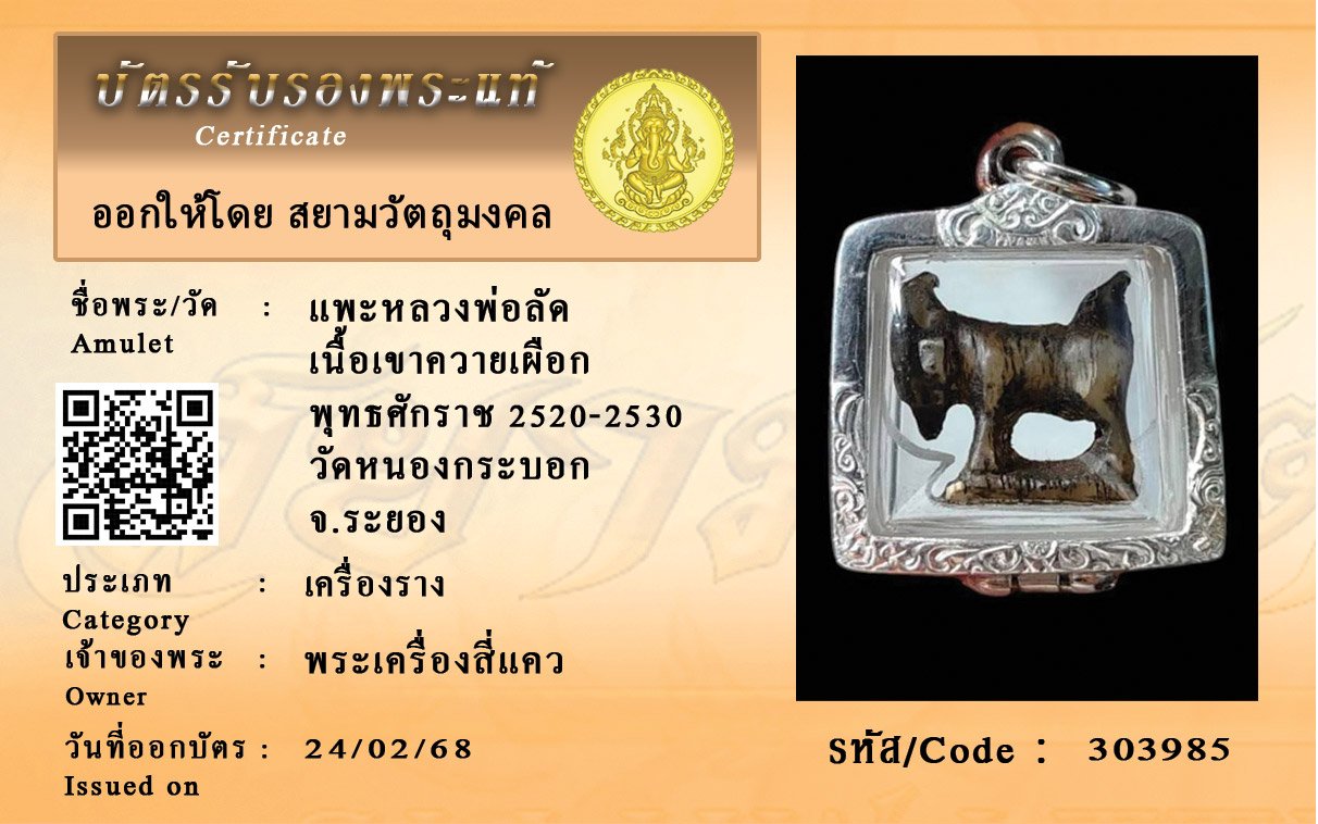 รหัสสินค้า : 303985 แพะหลวงพ่อลัด เนื้อเขาควายเผือก พุทธศักราช 2520-2530 วัดหนองกระบอก จ.ระยอง