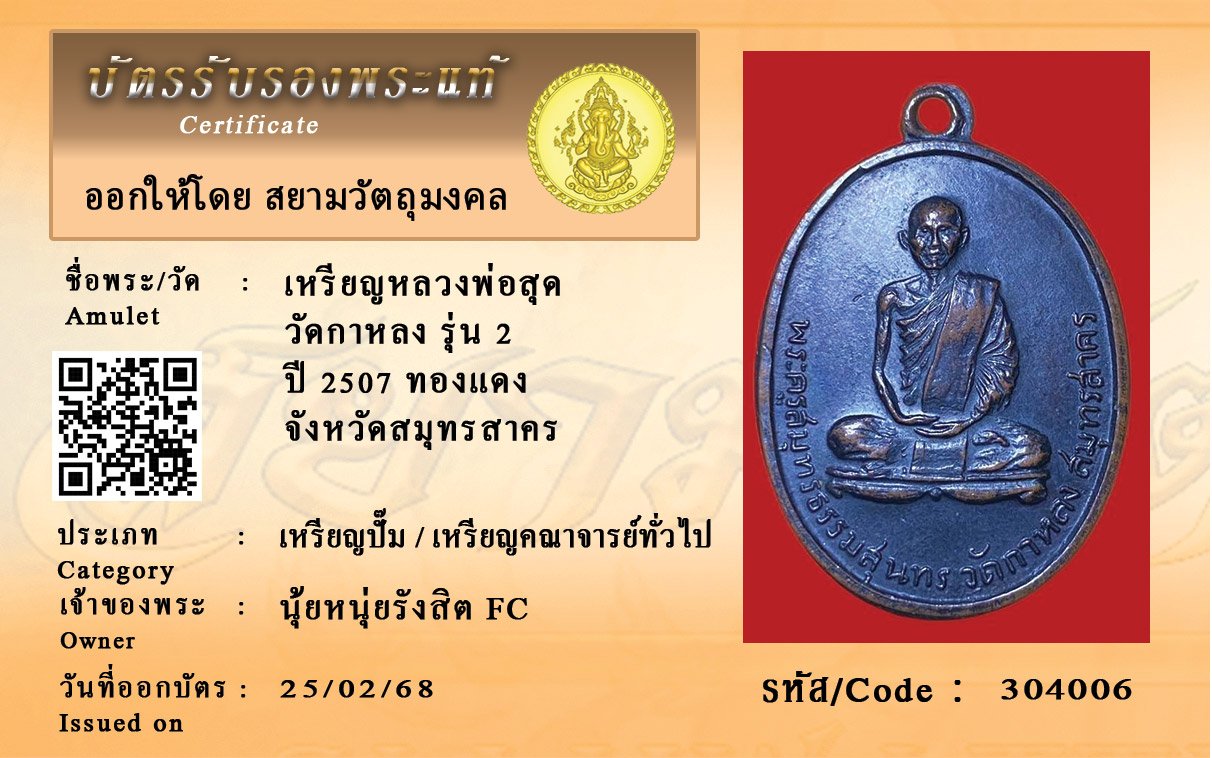 รหัสสินค้า : 304006 เหรียญหลวงพ่อสุด วัดกาหลง รุ่น 2 ปี 2507 ทองแดง จังหวัดสมุทรสาคร