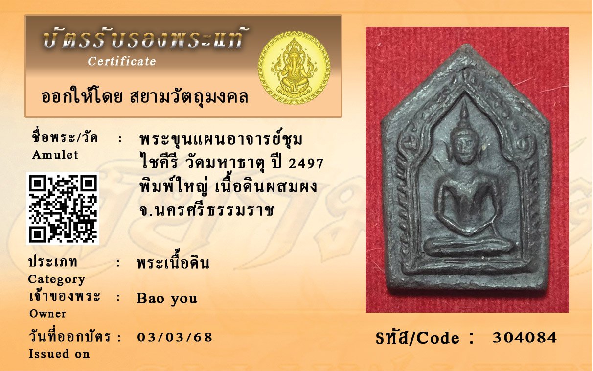 ค้นหาพระ พร้อมบัตรรับรองพระแท้