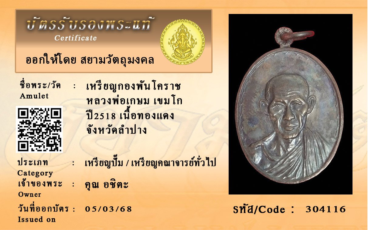 ค้นหาพระ พร้อมบัตรรับรองพระแท้