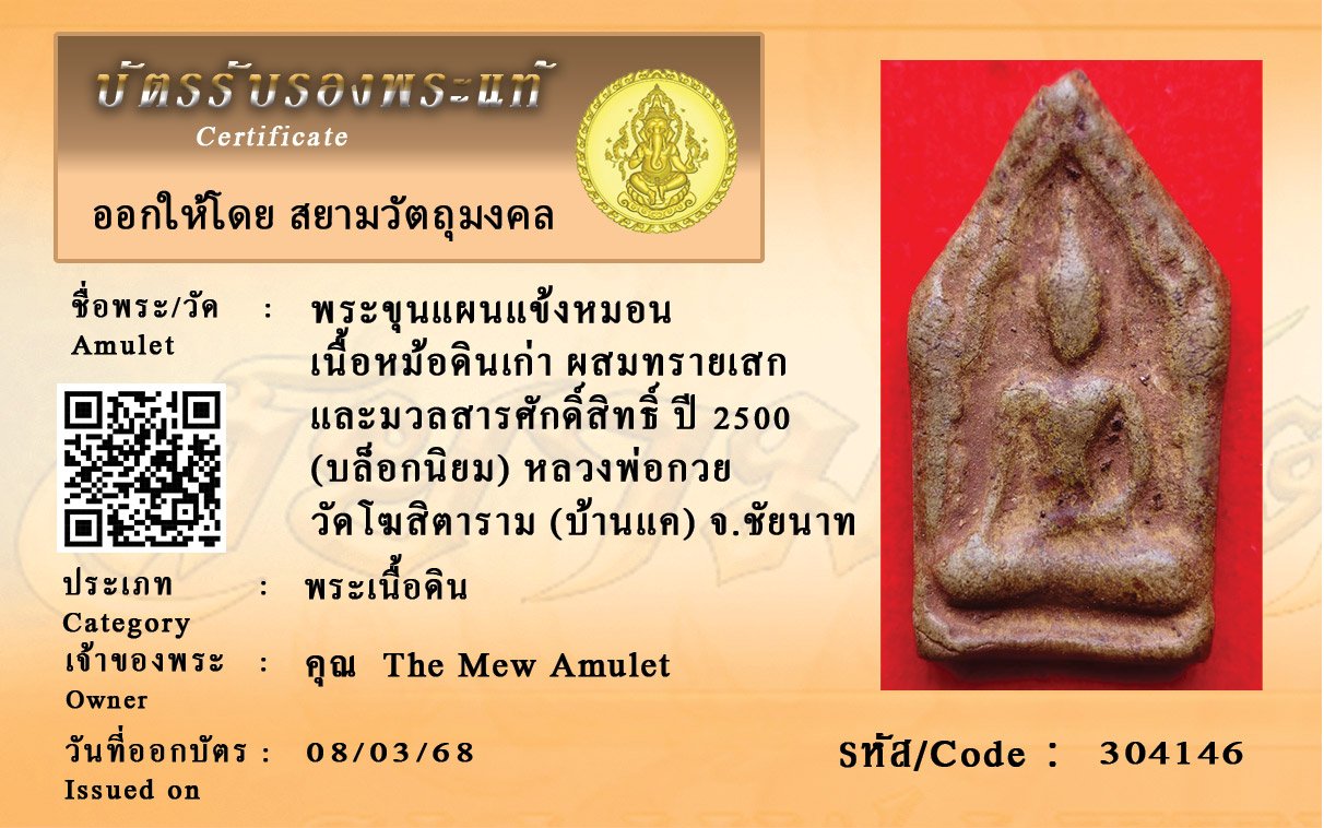 รหัสสินค้า : 304146 พระขุนแผนแข้งหมอน เนื้อหม้อดินเก่า ผสมทรายเสก และมวลสารศักดิ์สิทธิ์ ปี 2500 (บล็อกนิยม) หลวงพ่อกวย วัดโฆสิตาราม (บ้านแค) จ.ชัยนาท
