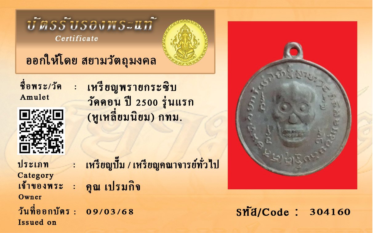 รหัสสินค้า : 304160 เหรียญพรายกระซิบ วัดดอน ปี 2500 รุ่นแรก (หูเหลี่ยมนิยม) กทม.