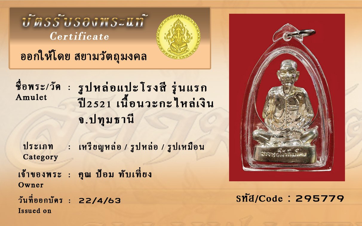 รหัสสินค้า : (295779) รูปหล่อแปะโรงสี รุ่นแรกปี2521 เนื้อนวะกะไหล่เงิน จ.ปทุมธานี