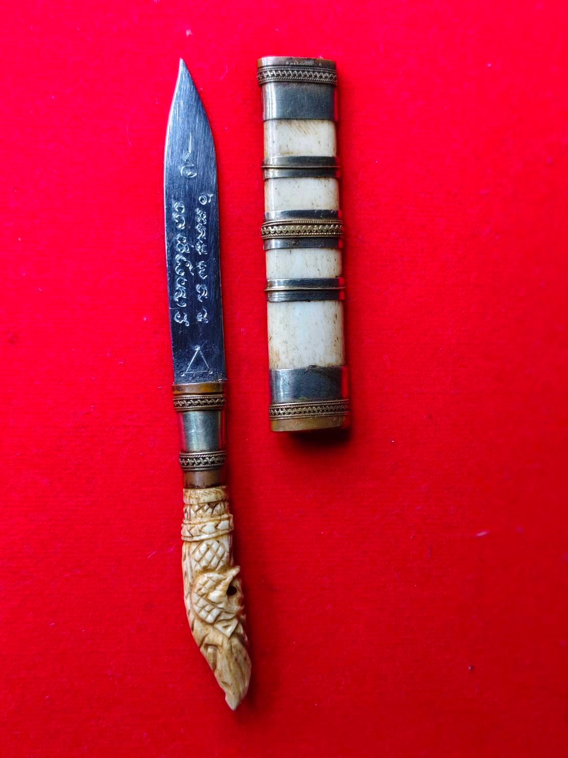 รหัสสินค้า : 304373 มีดหมอ หลวงพ่อกวย ด้ามงา-ฝักกระดูกช้าง ใบมีด เนื้อโลหะ(นิยม) วัดโฆสิตาราม (บ้านแค) จัดสร้างปี 2521 จ.ชัยนาท