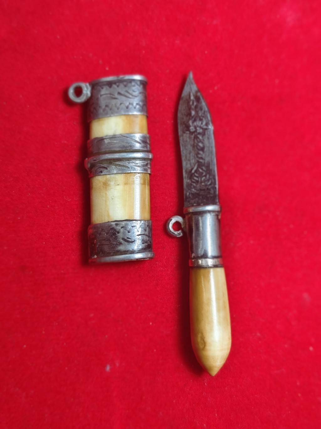 รหัสสินค้า : 304735 มีดสาริกา หมอหลวงพ่อเดิม ด้ามงา-ฝักไม้ แหนบเงินตลอดเล่ม ใบมีด เนื้อโลหะ จัดสร้างปี 2470-2494 วัดหนองโพธิ์ จังหวัดนครสวรรค์