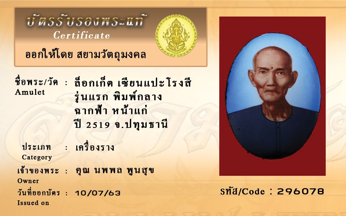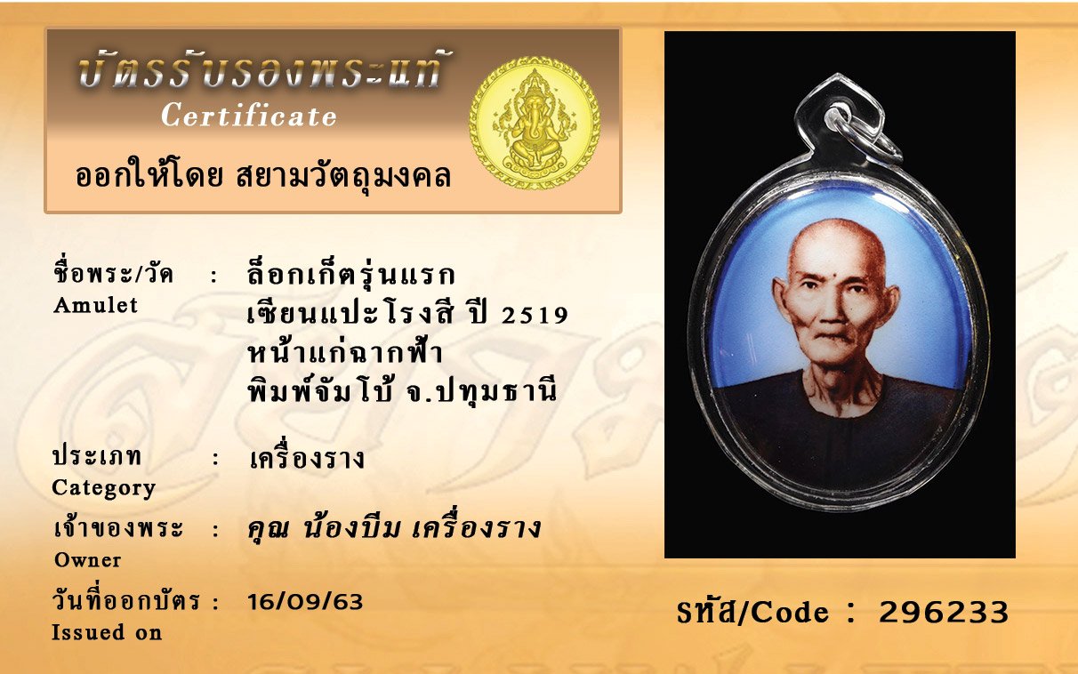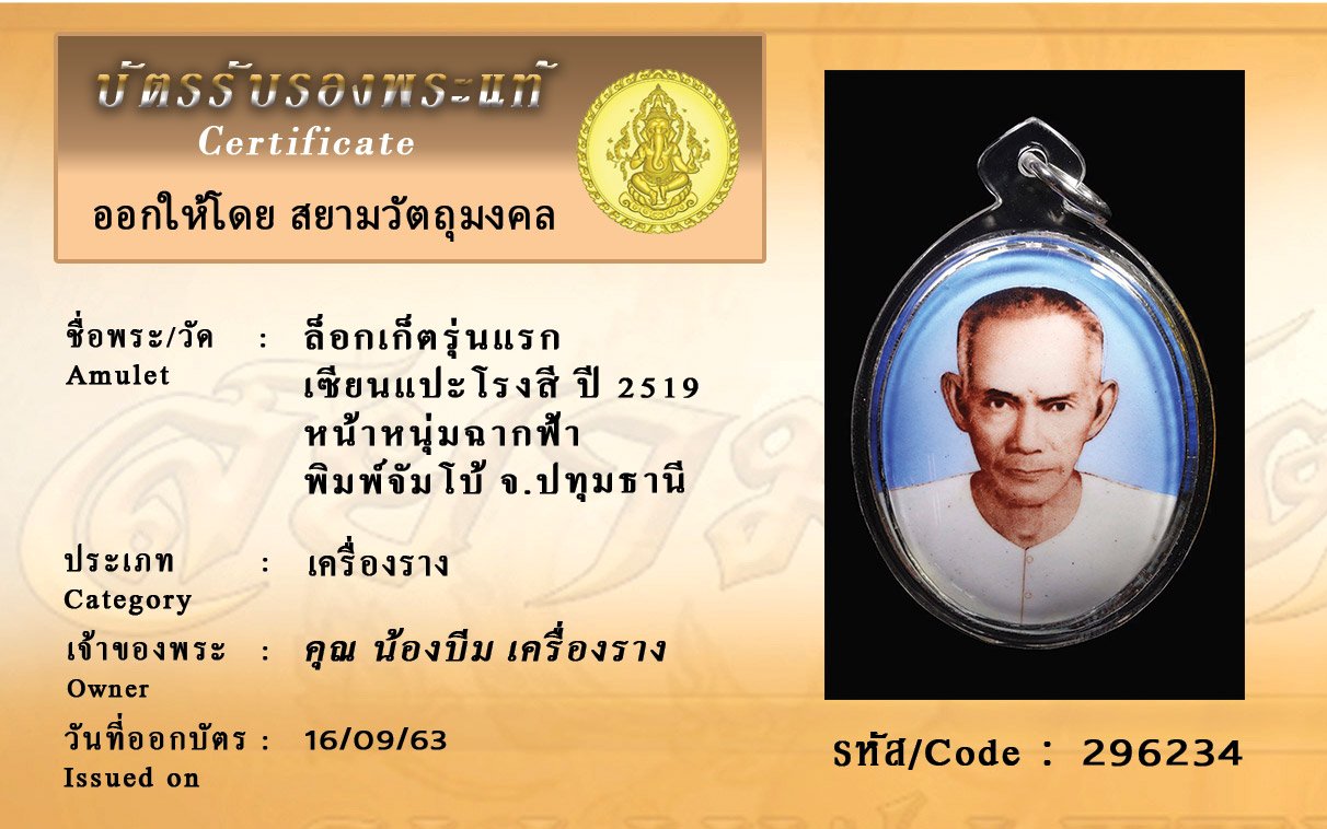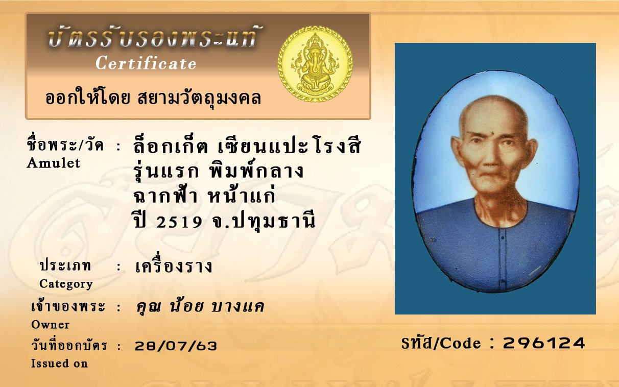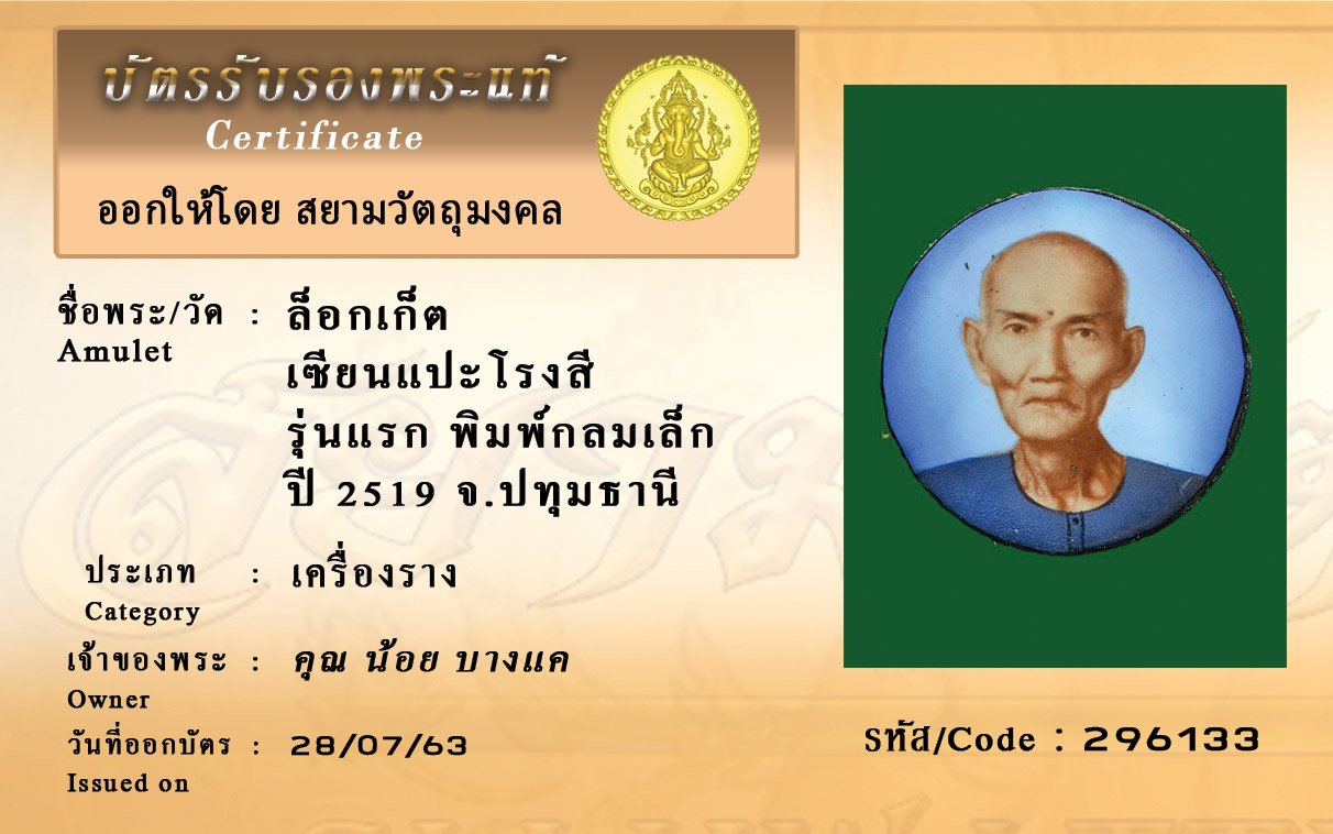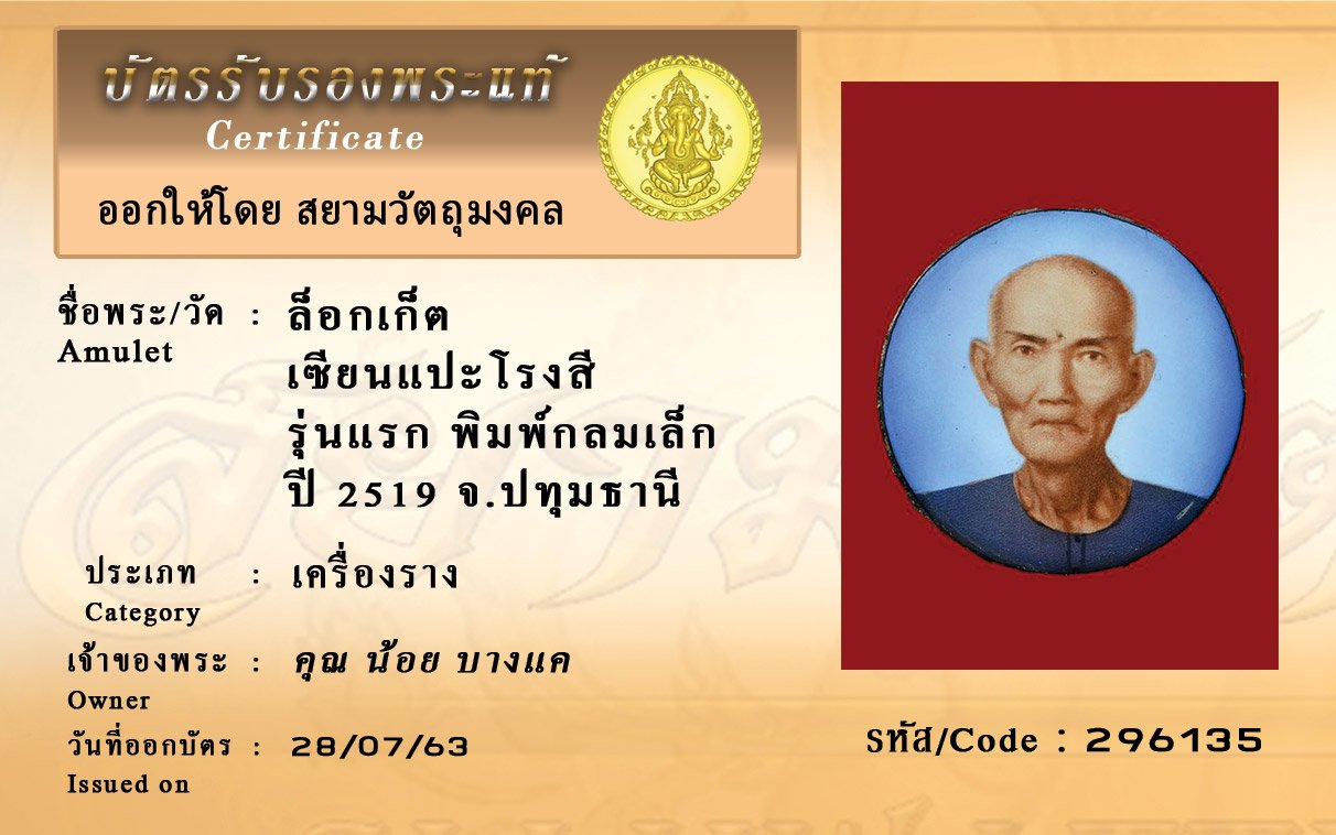 Certificate ค้นหาใบรับรองพระแท้