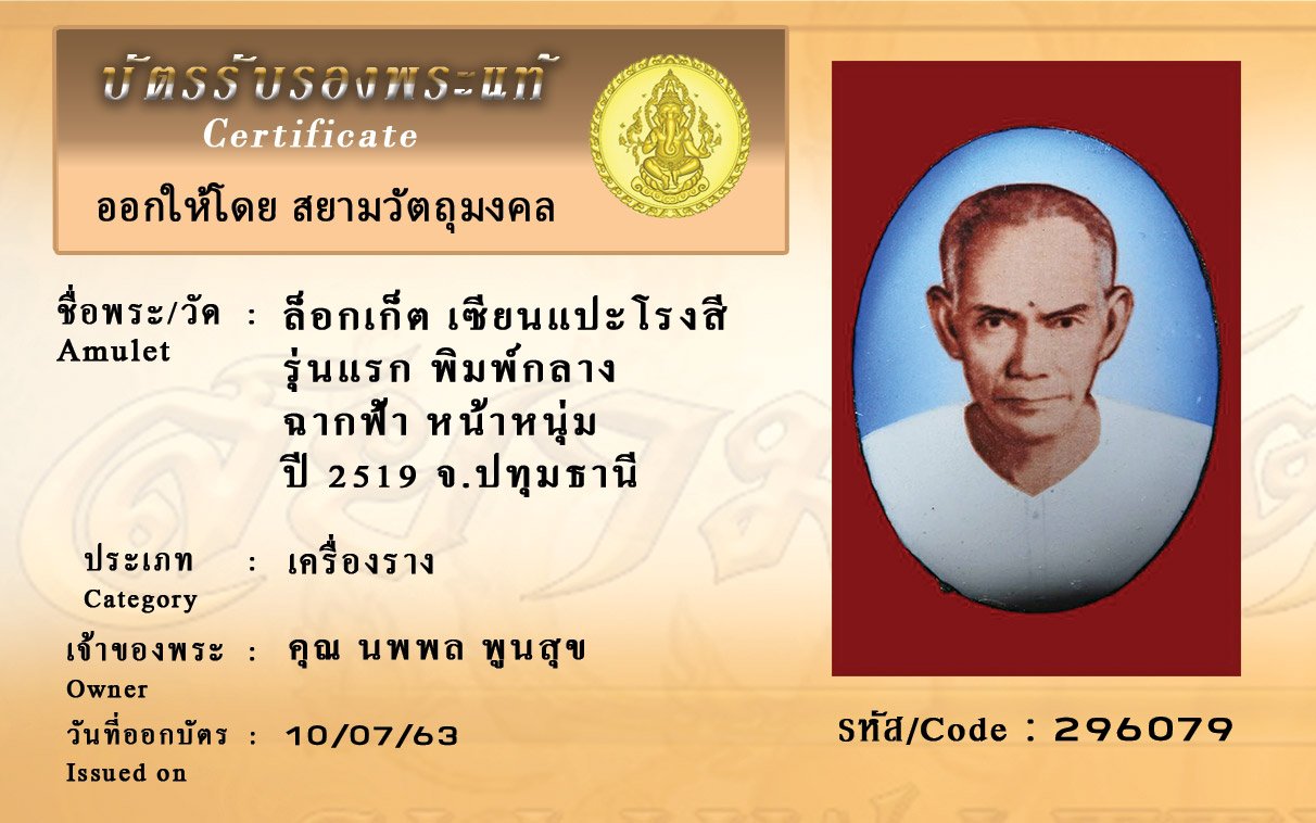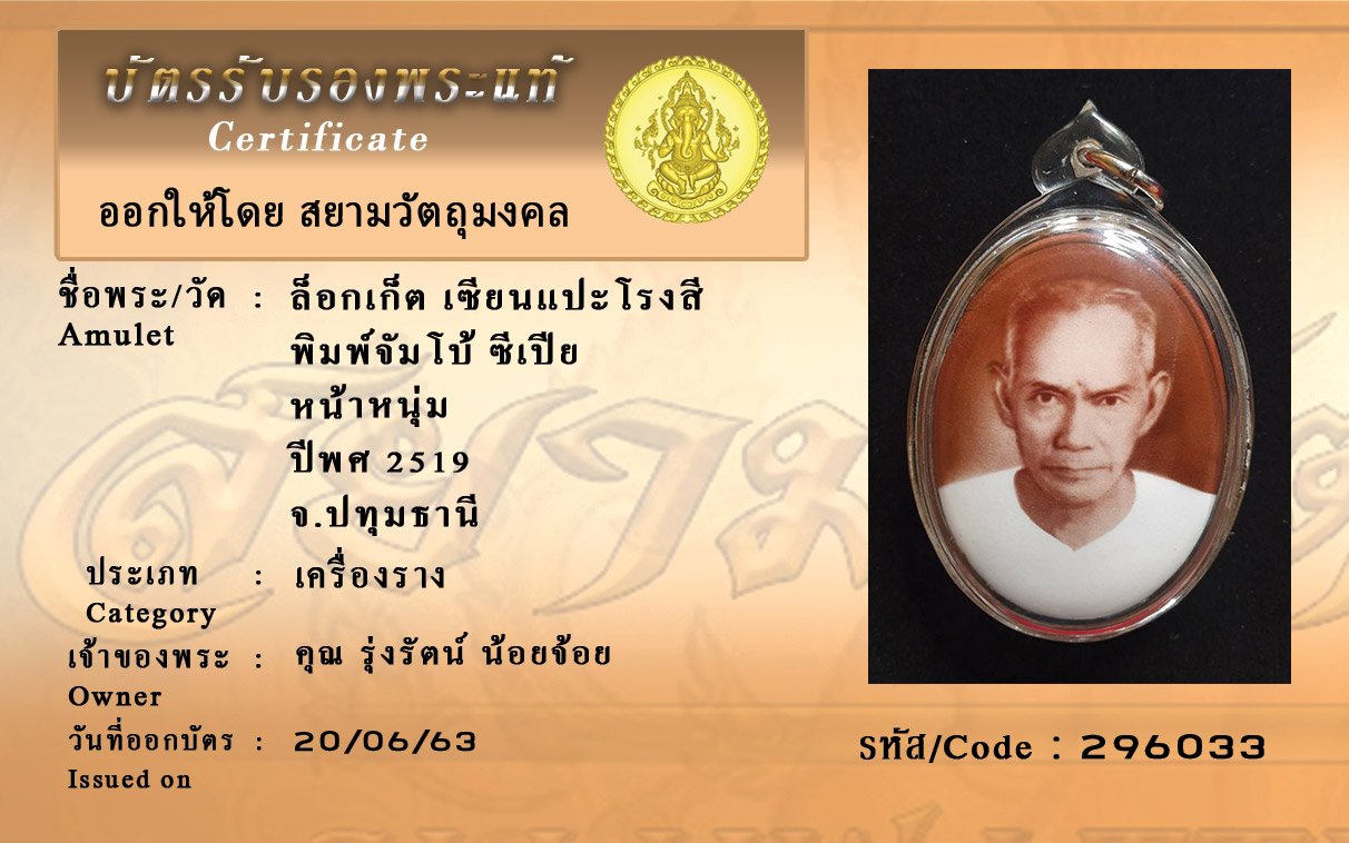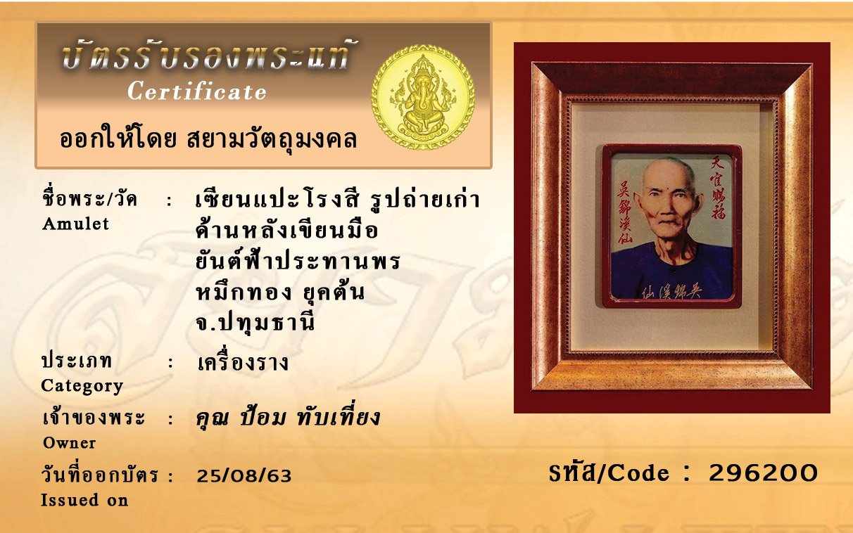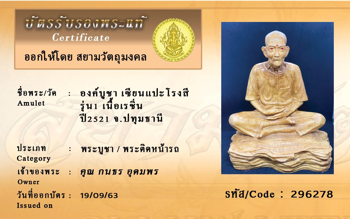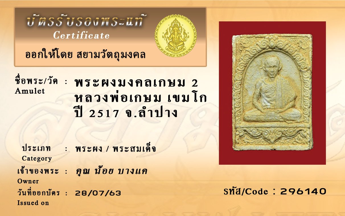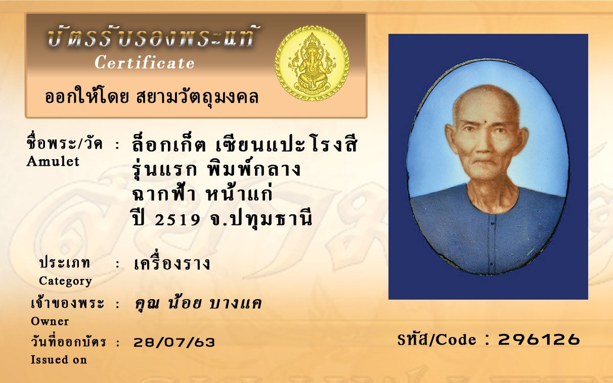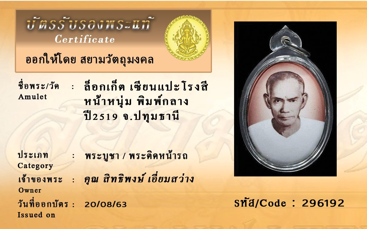 Certificate ค้นหาใบรับรองพระแท้