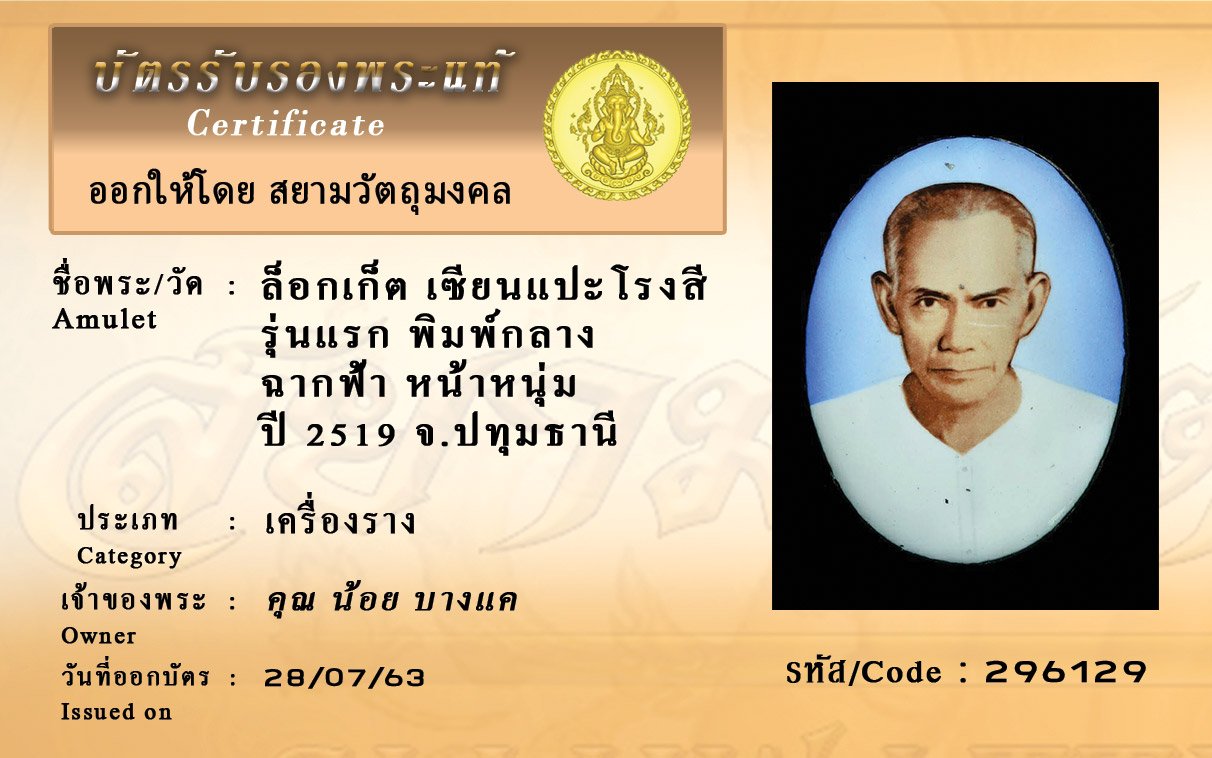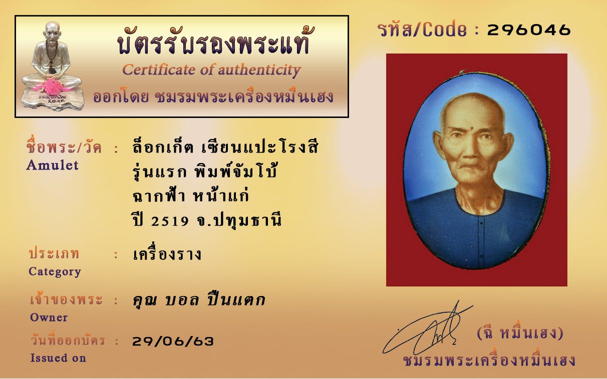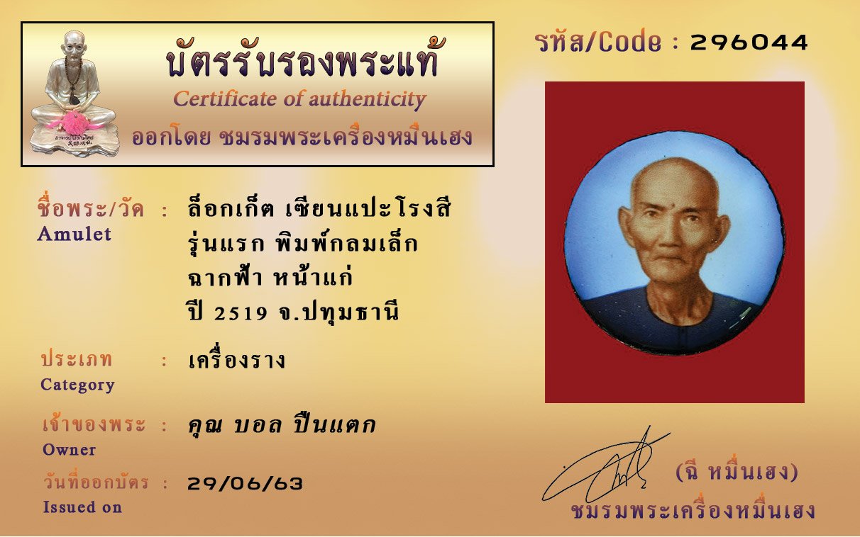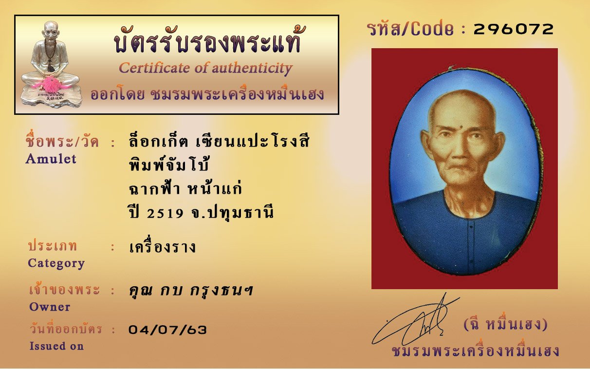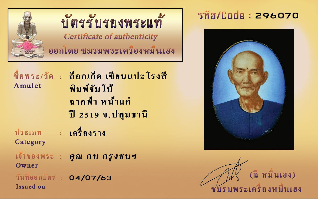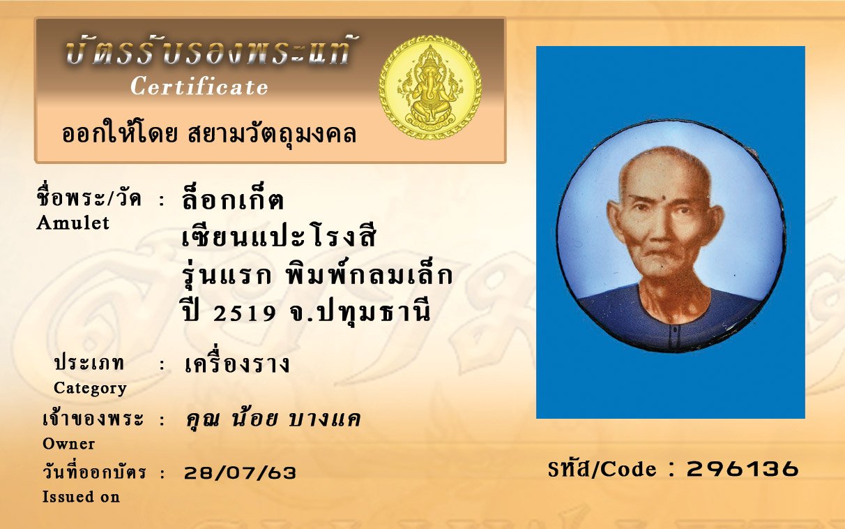 Certificate ค้นหาใบรับรองพระแท้