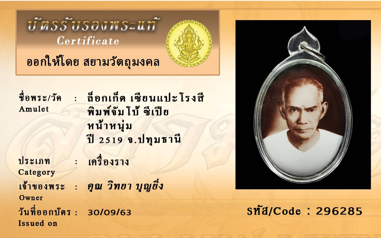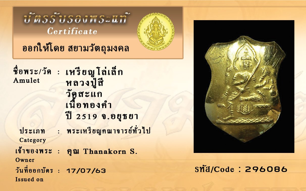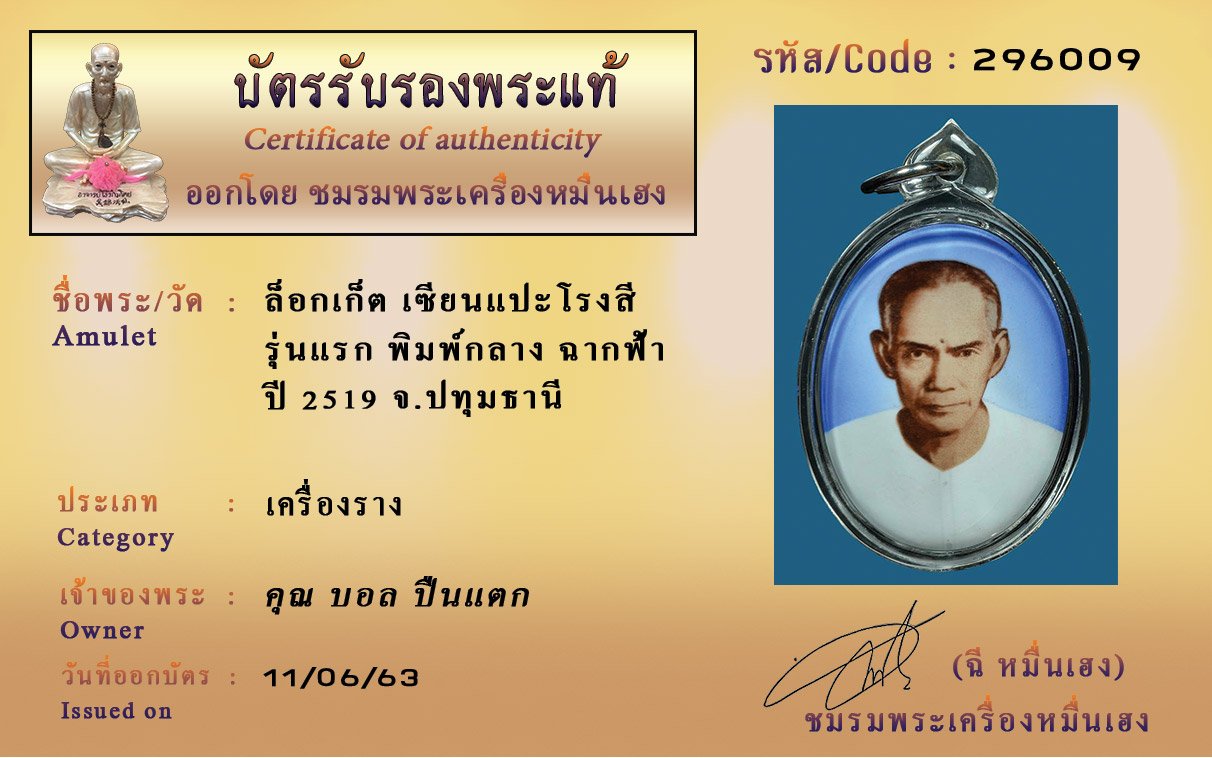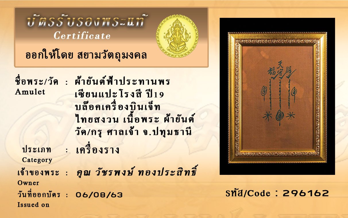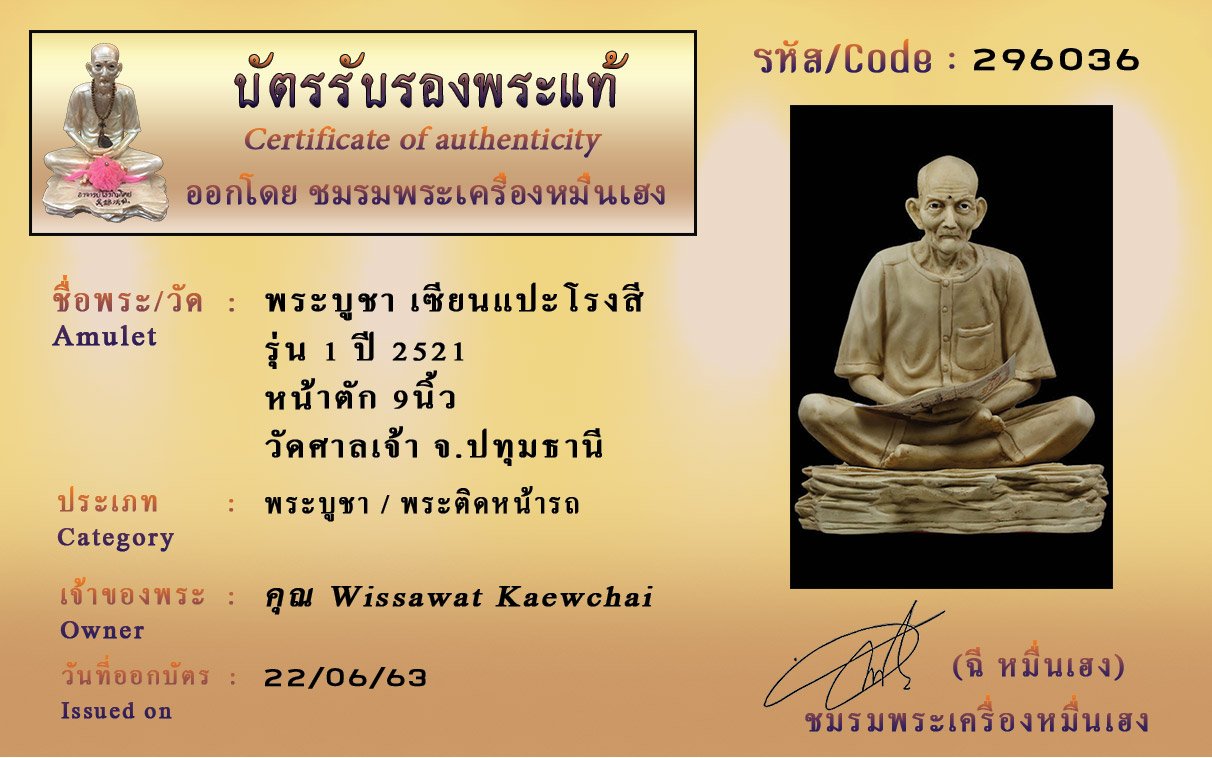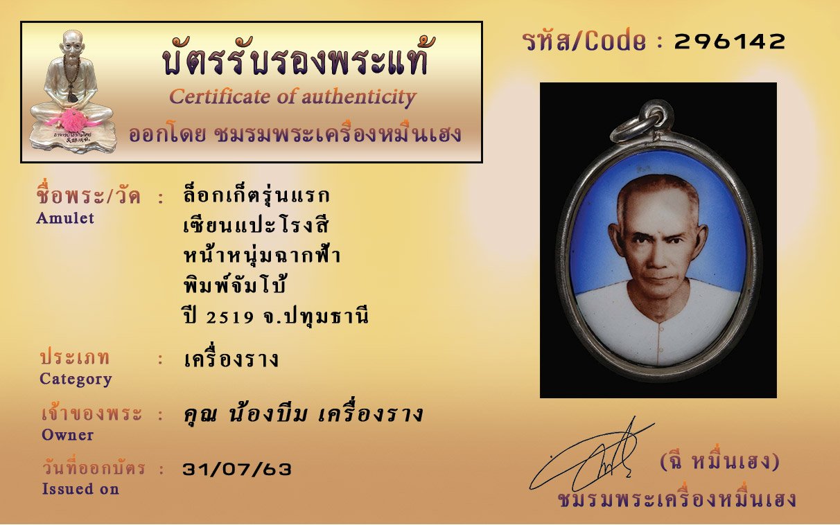 Certificate ค้นหาใบรับรองพระแท้