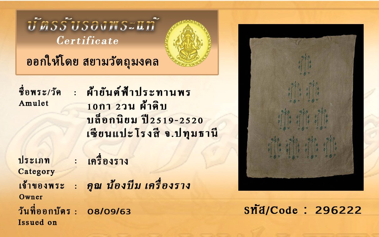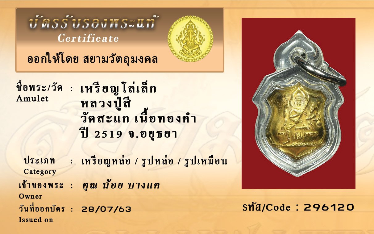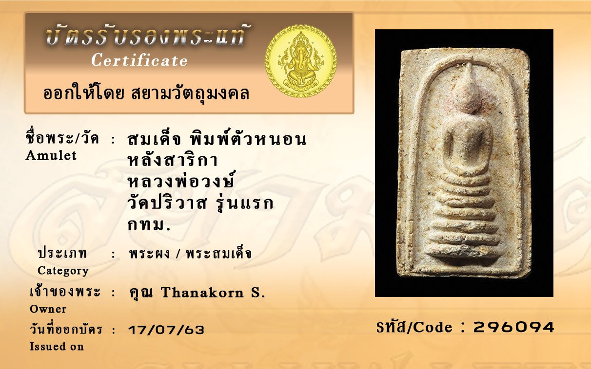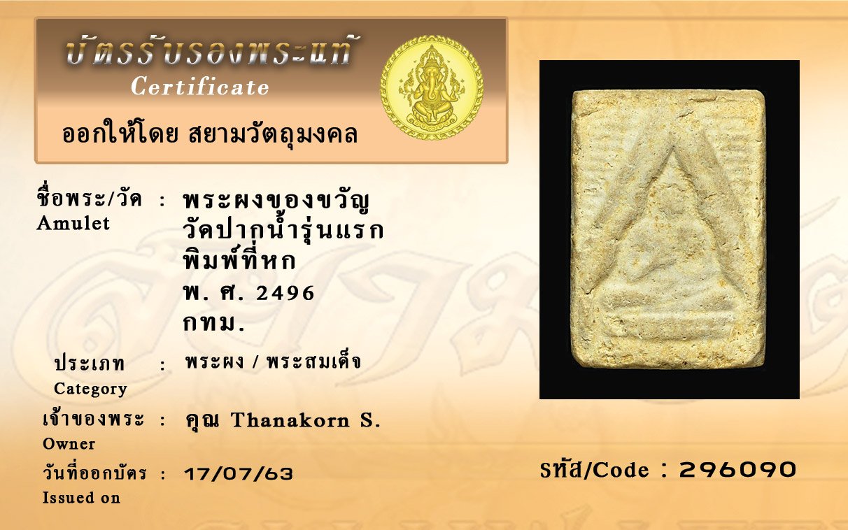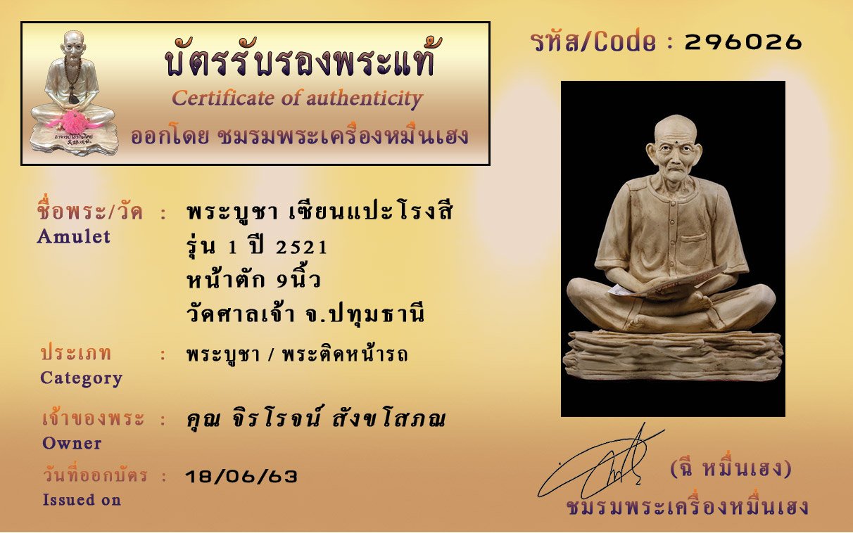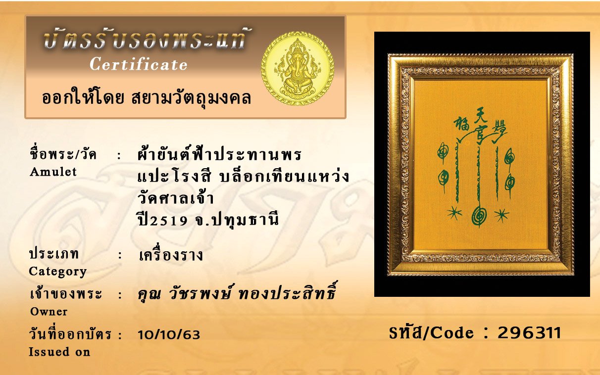Certificate ค้นหาใบรับรองพระแท้