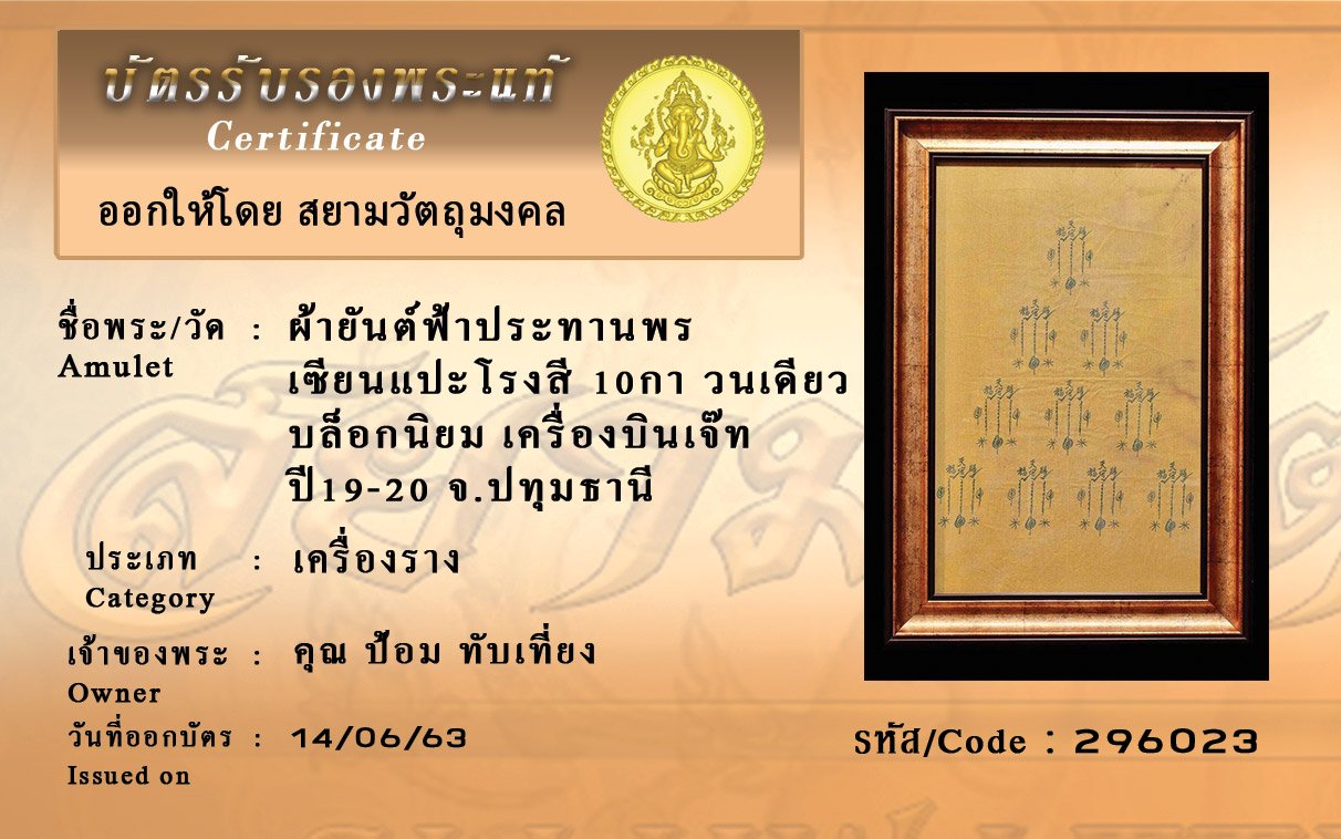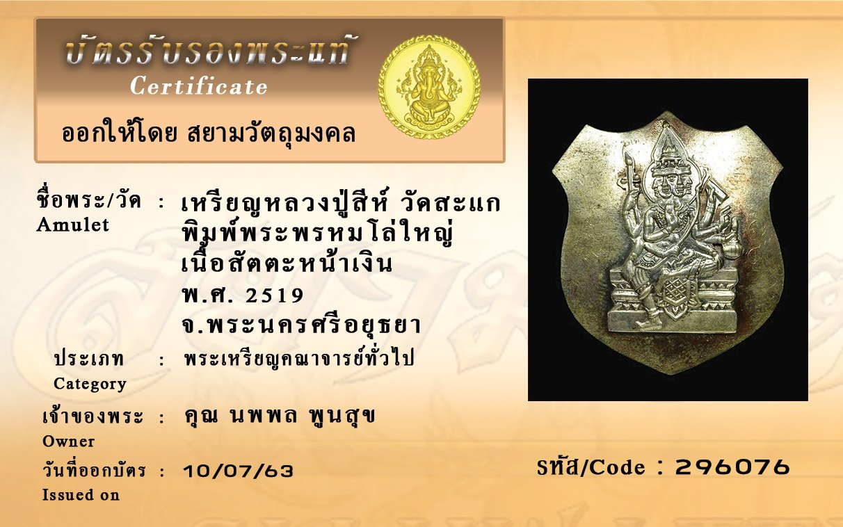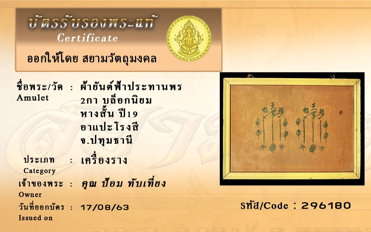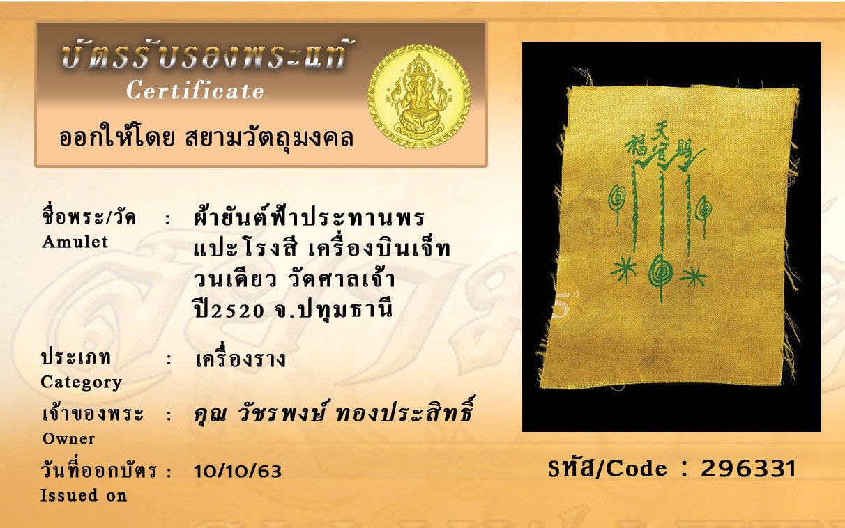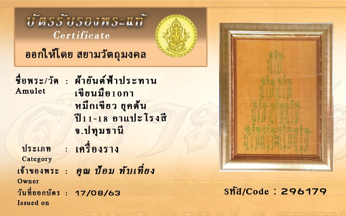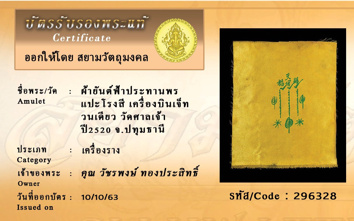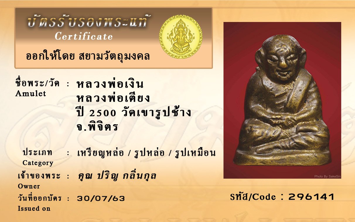 Certificate ค้นหาใบรับรองพระแท้
