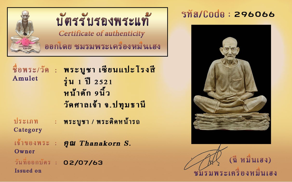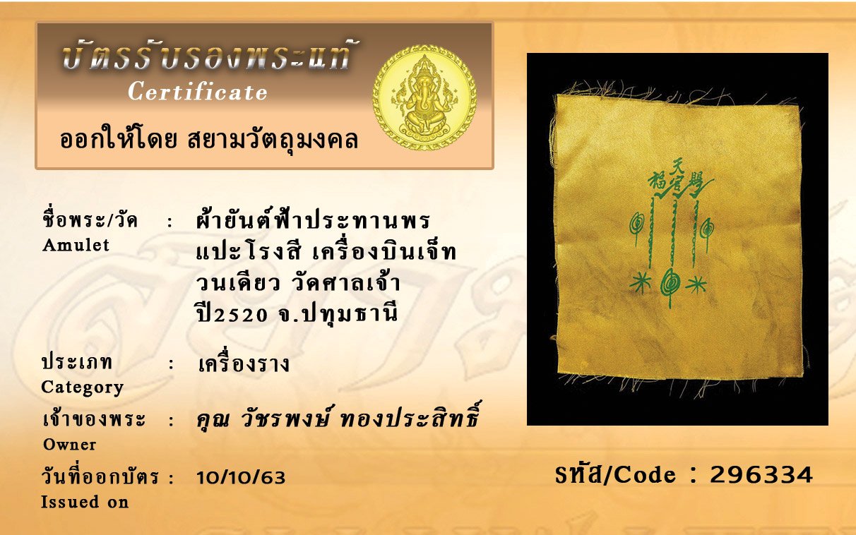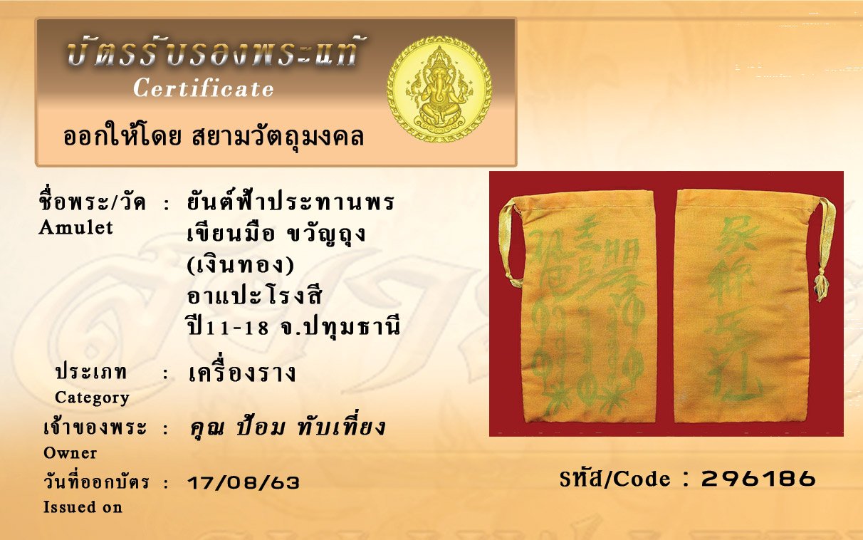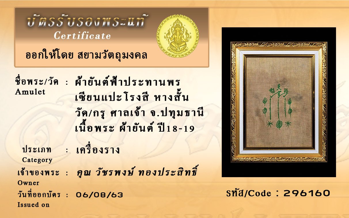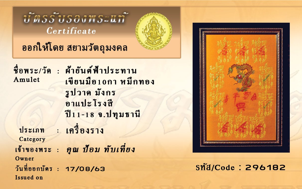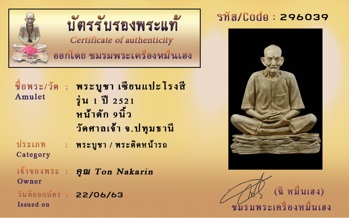 Certificate ค้นหาใบรับรองพระแท้