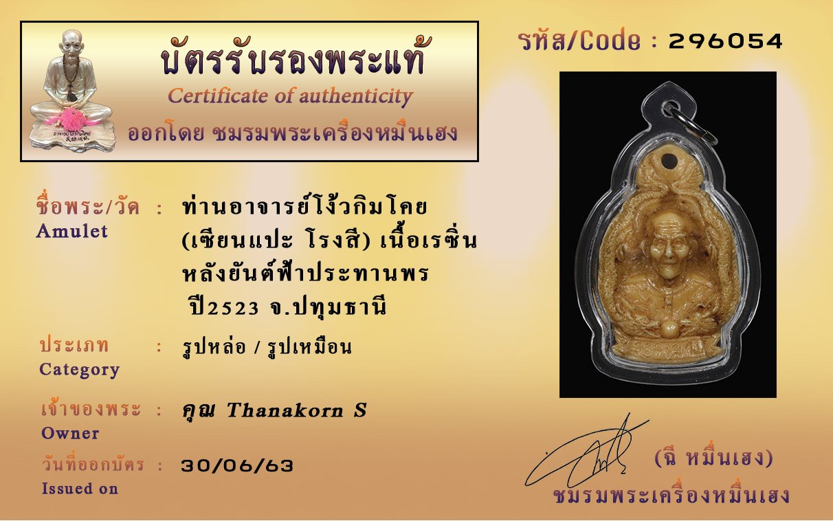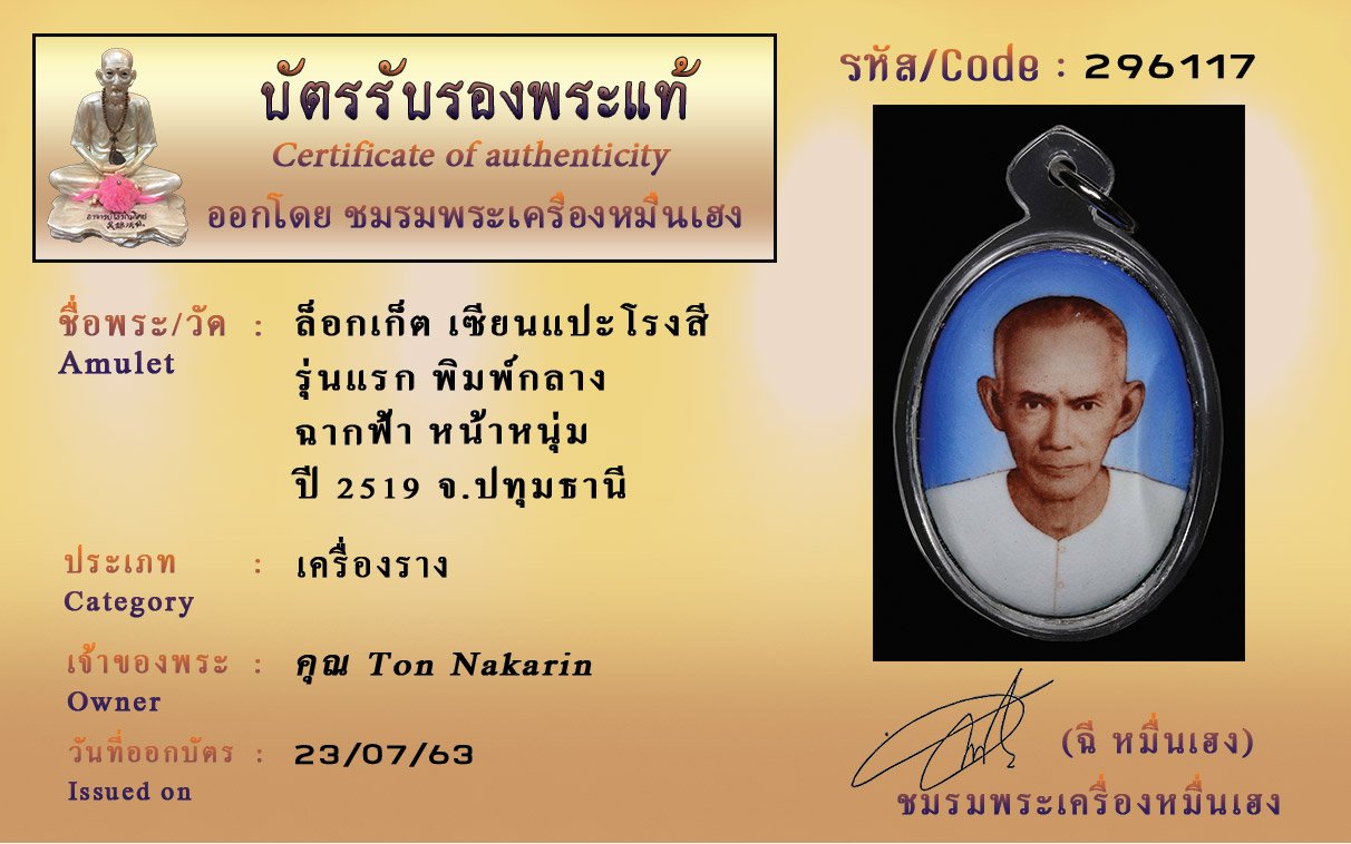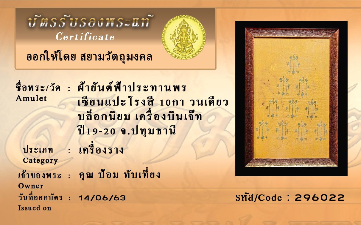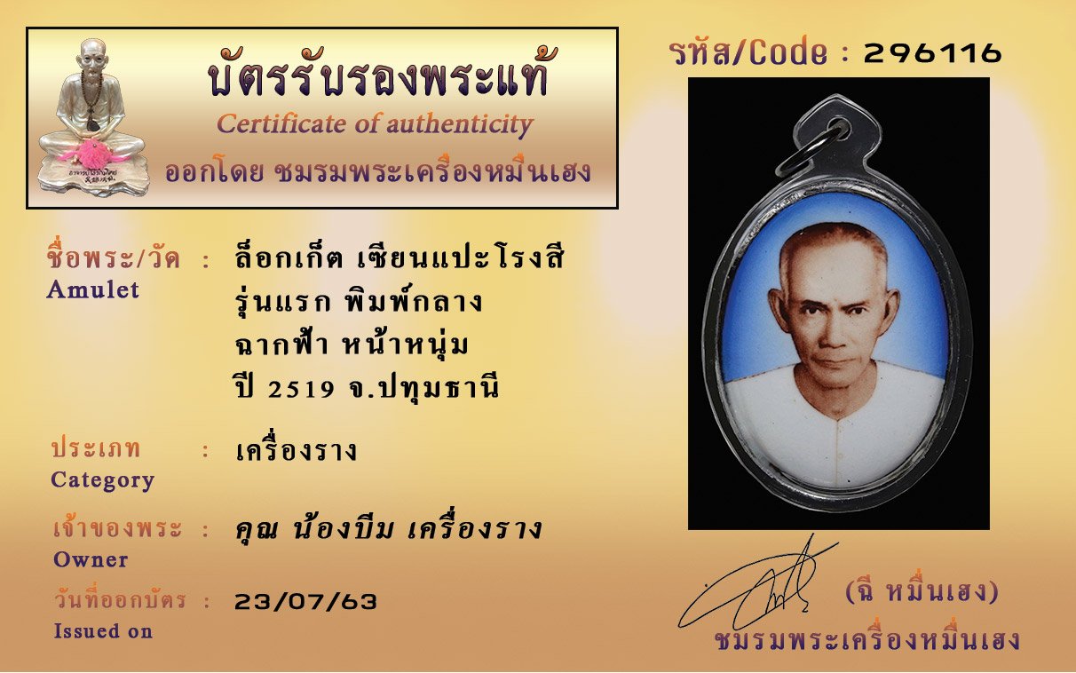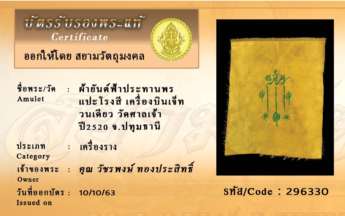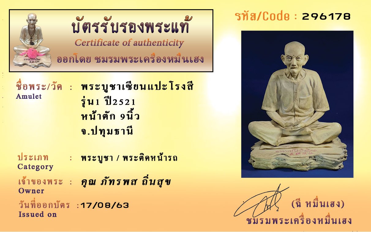Certificate ค้นหาใบรับรองพระแท้