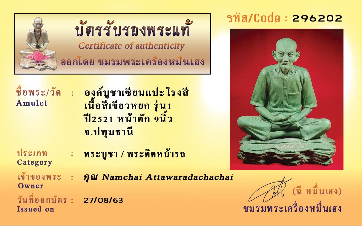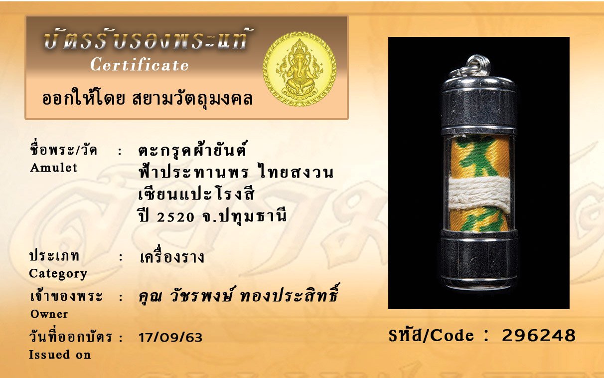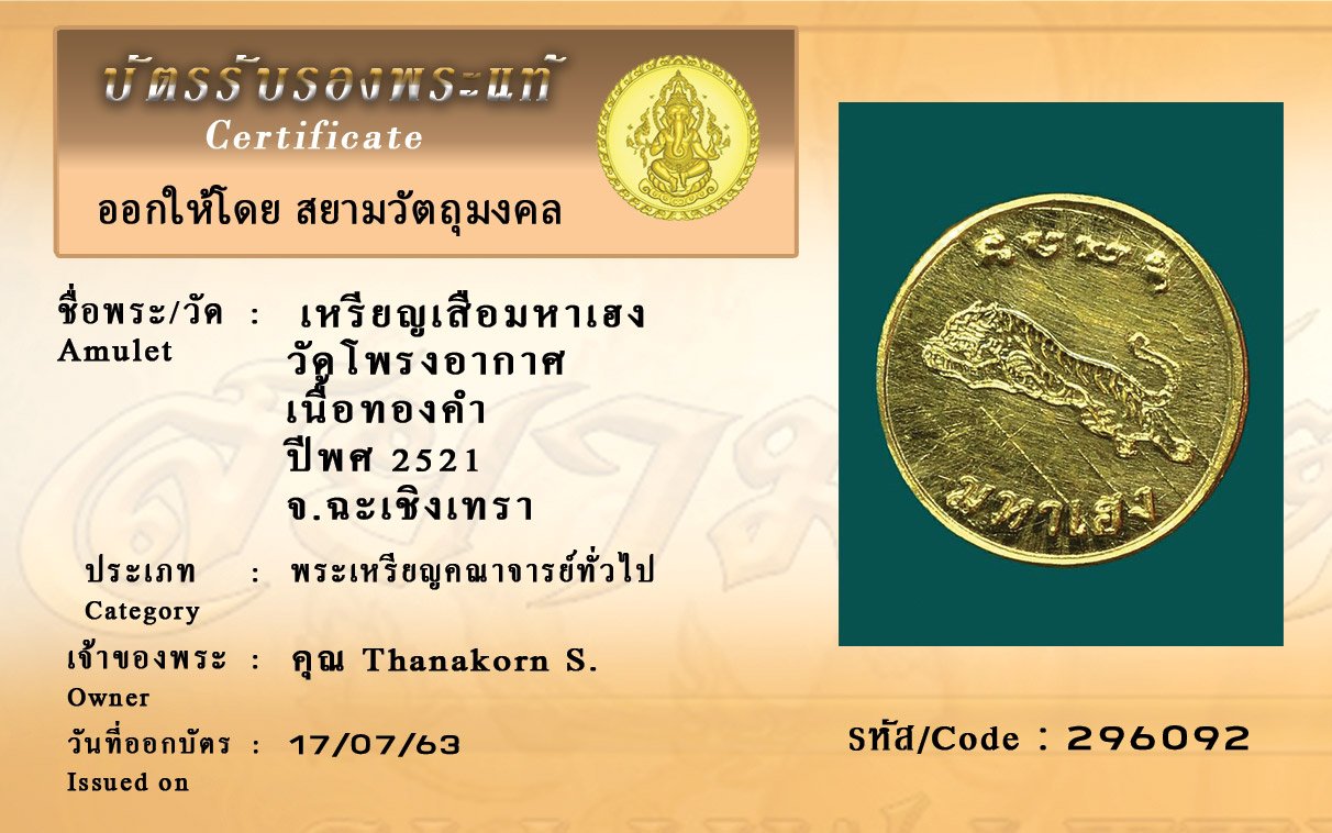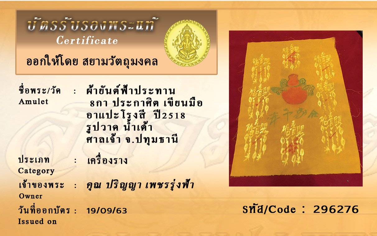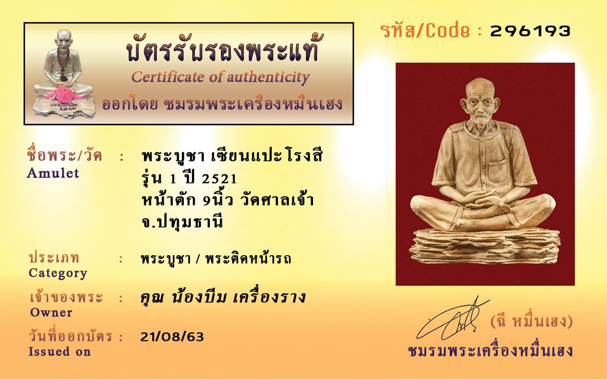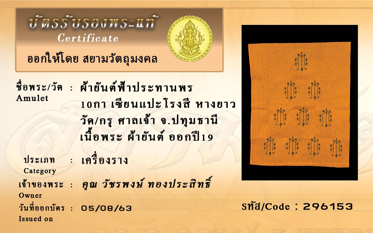 Certificate ค้นหาใบรับรองพระแท้