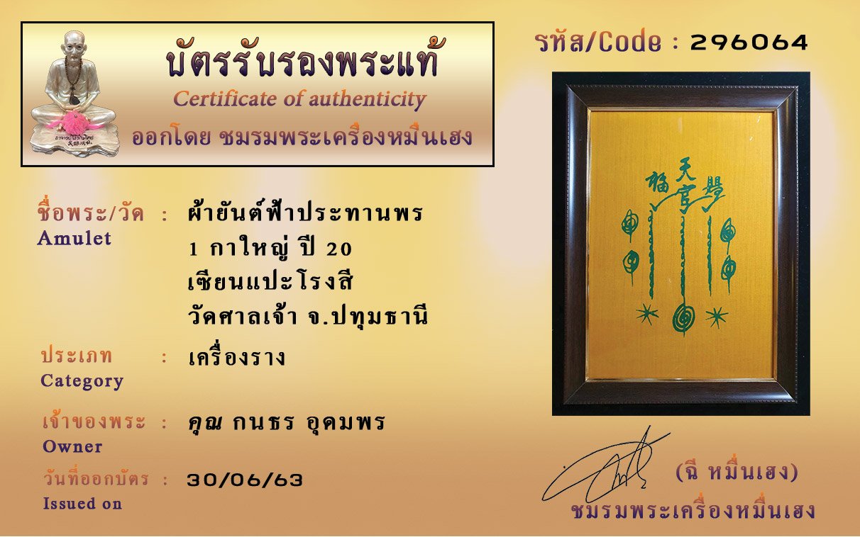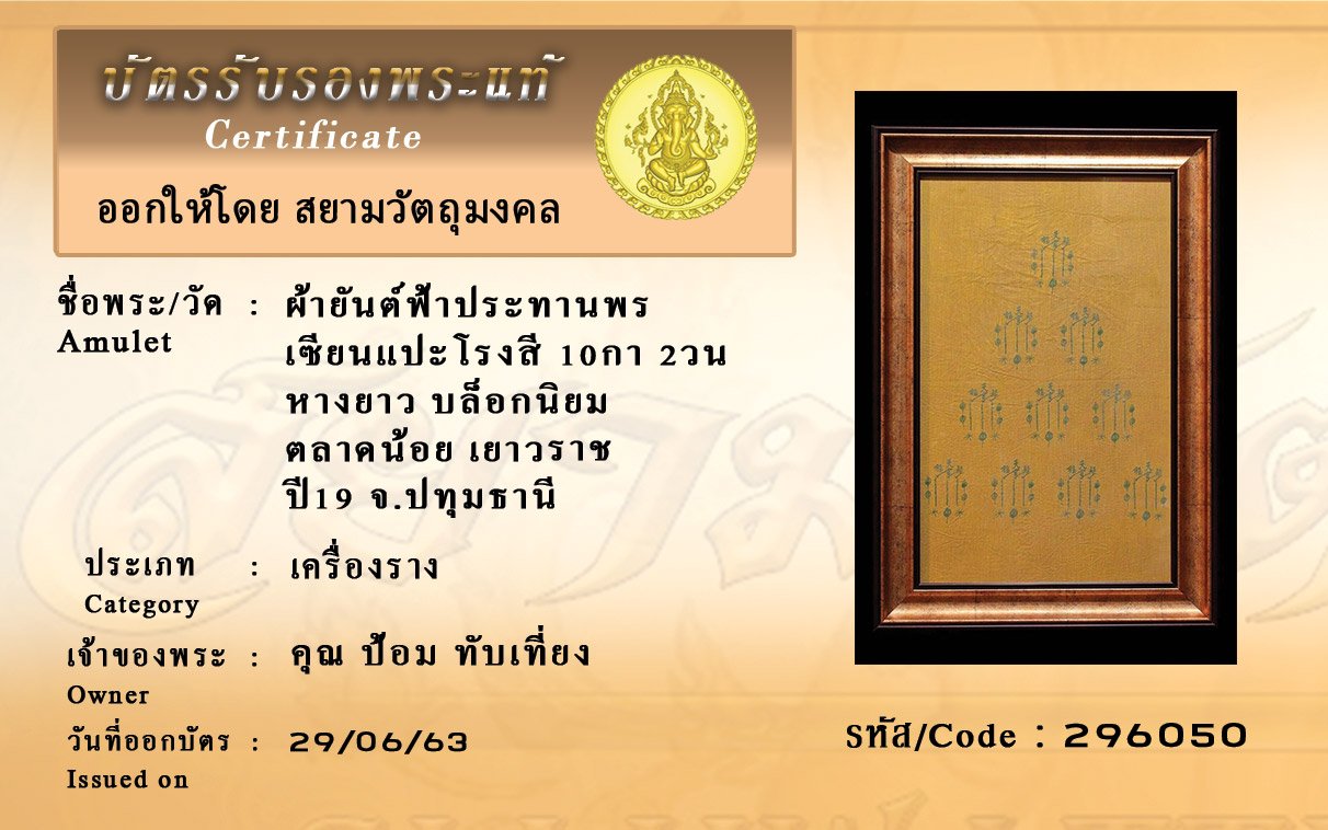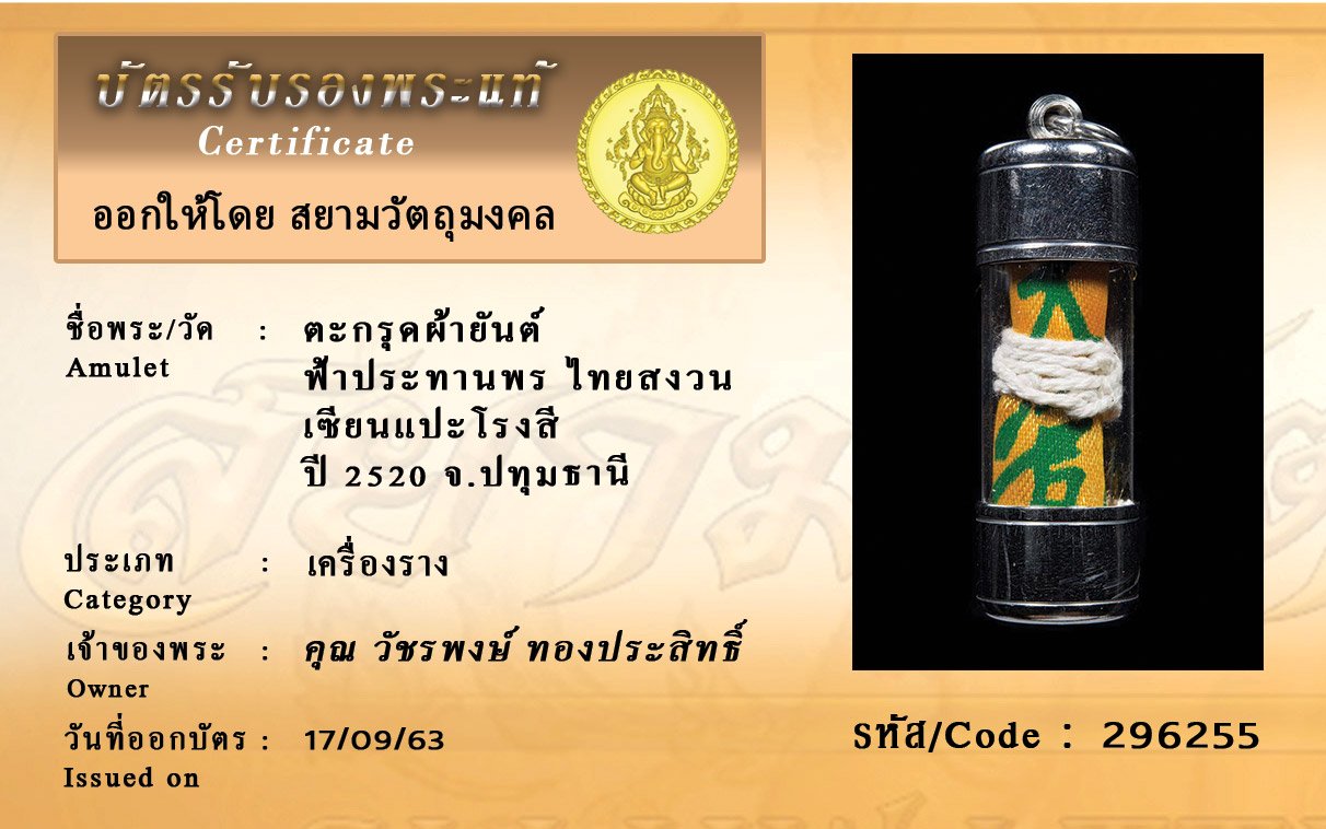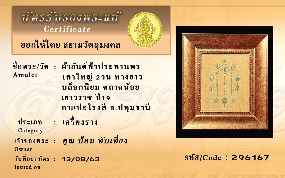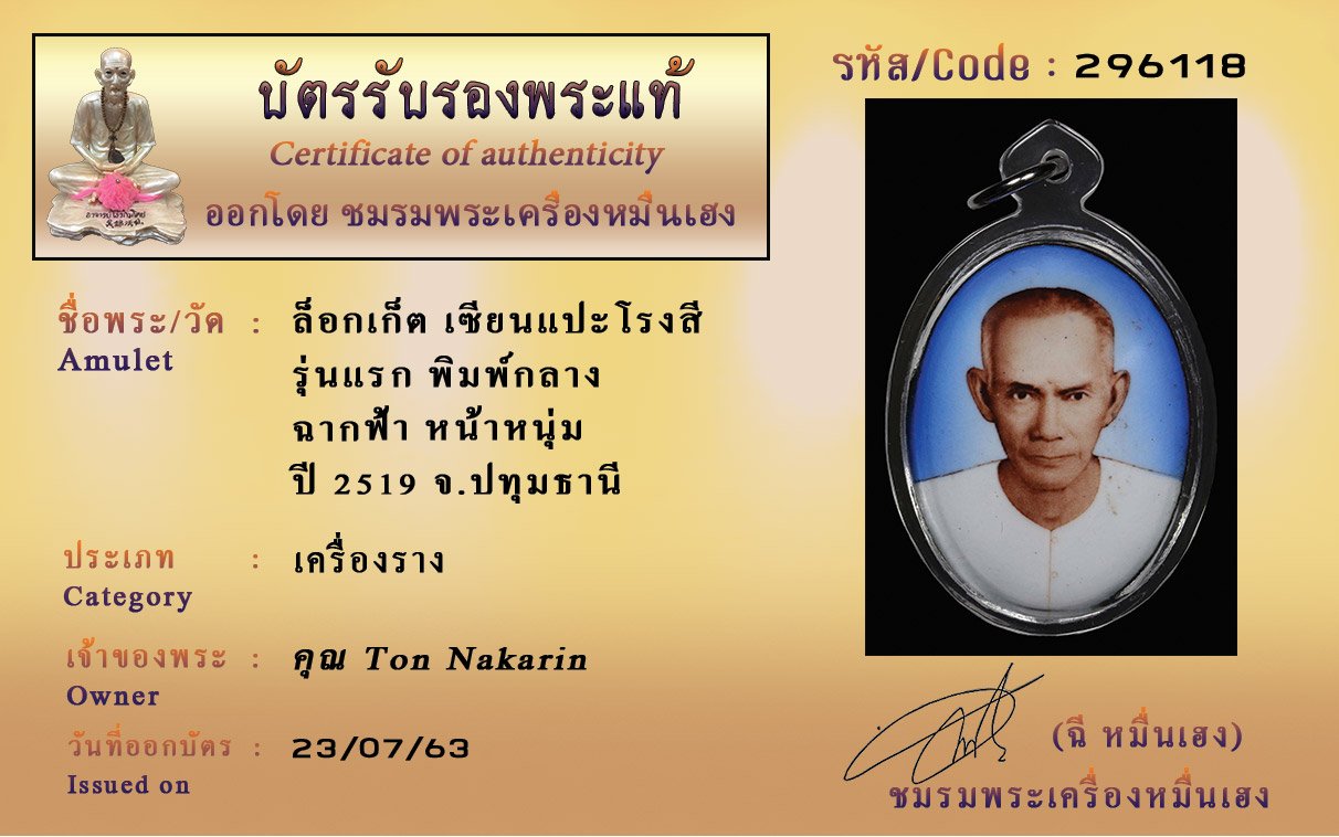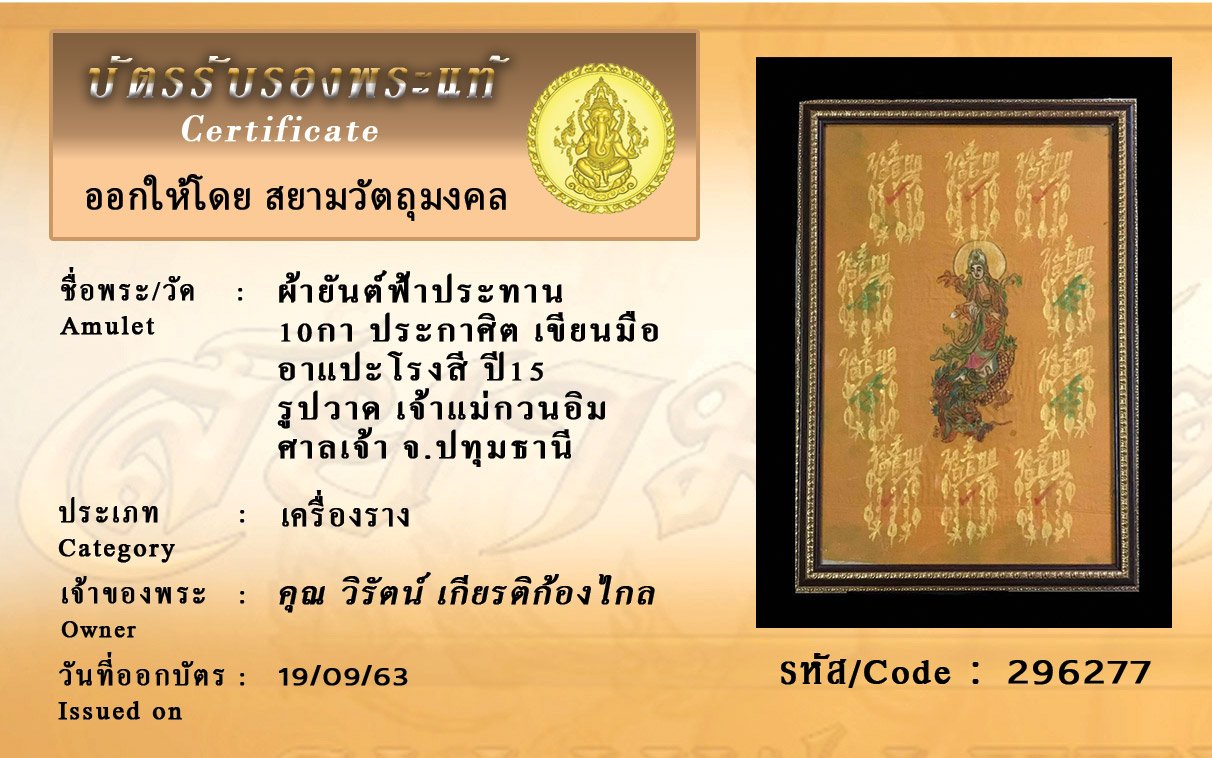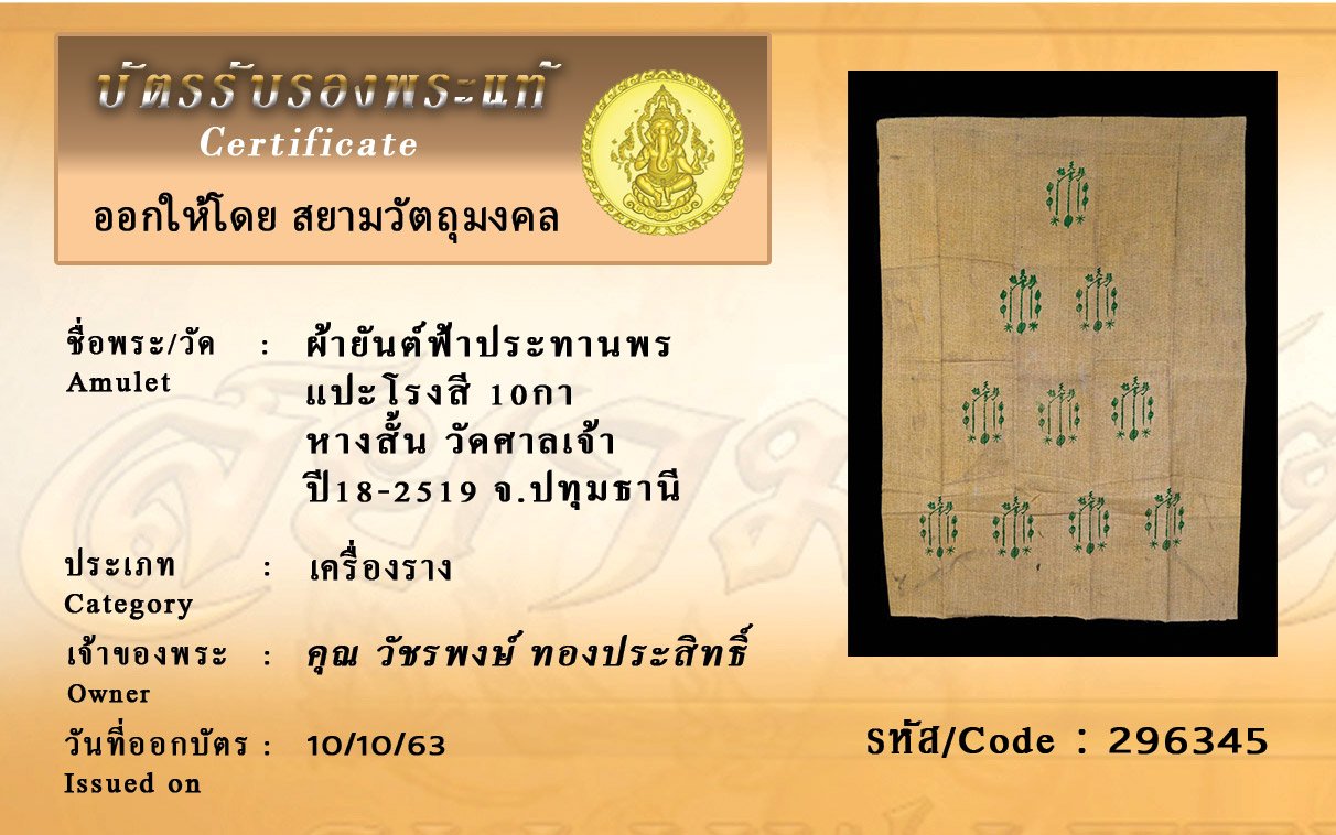Certificate ค้นหาใบรับรองพระแท้