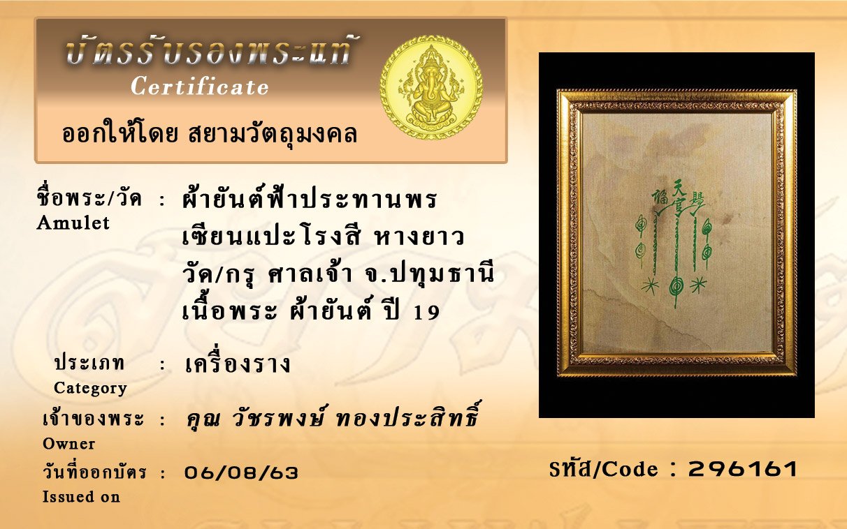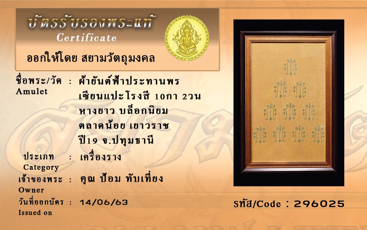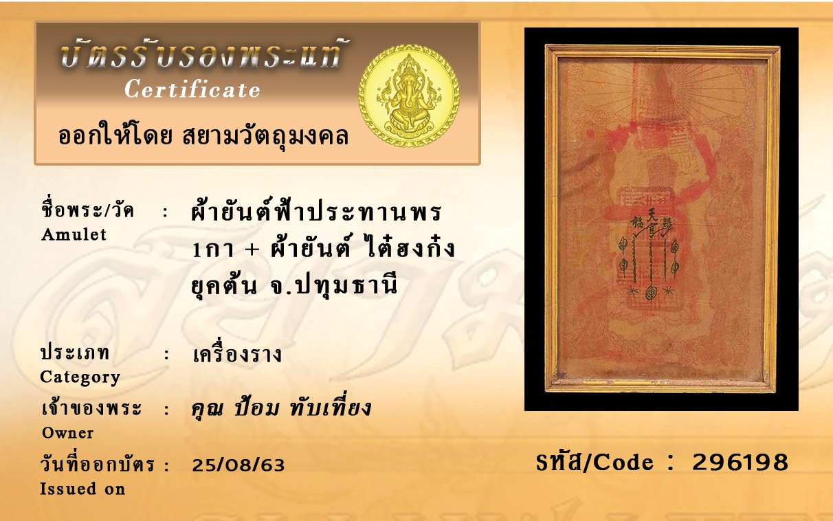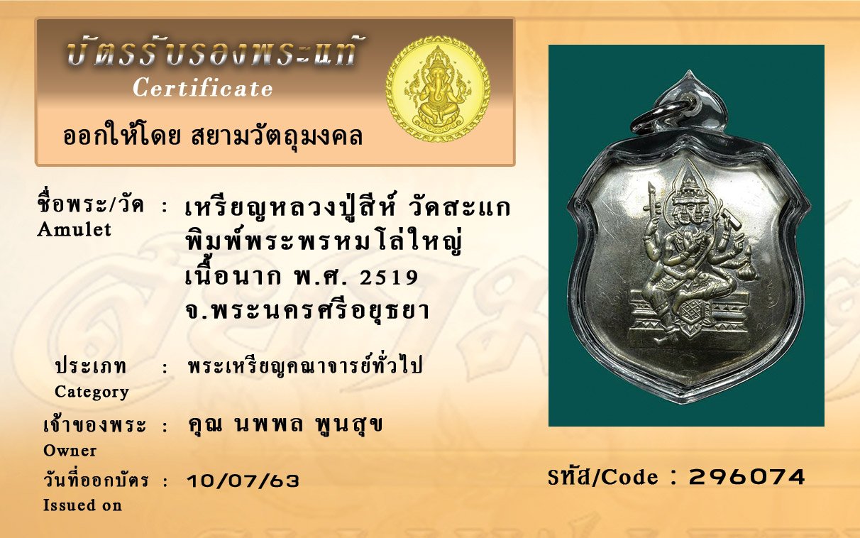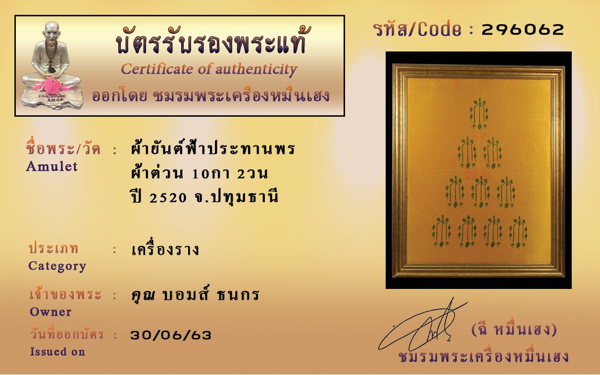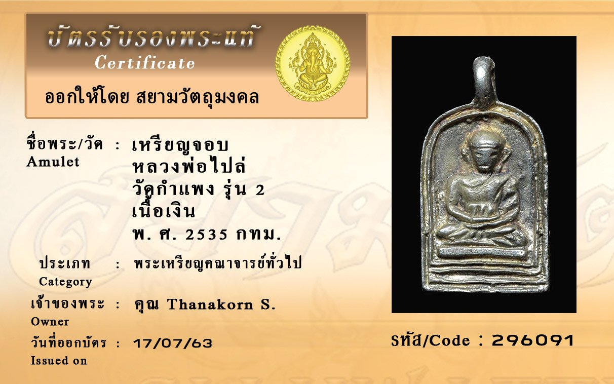 Certificate ค้นหาใบรับรองพระแท้