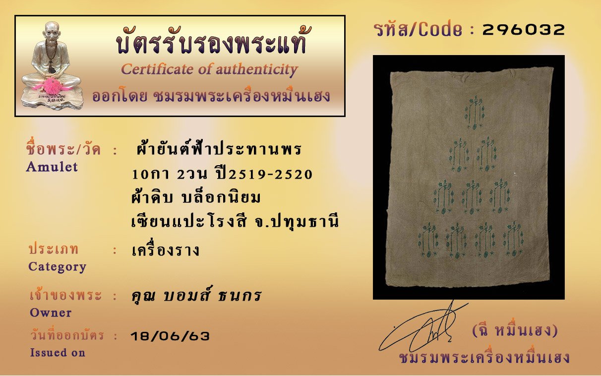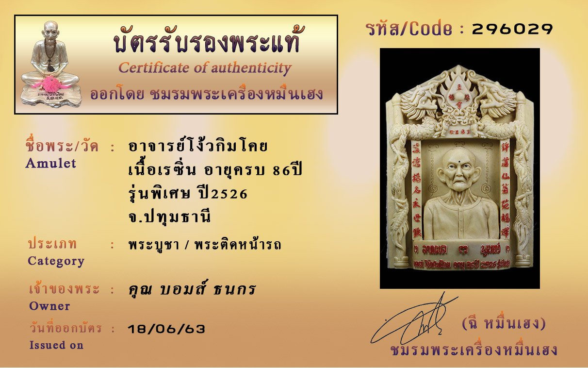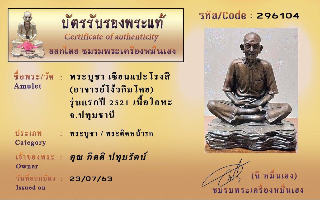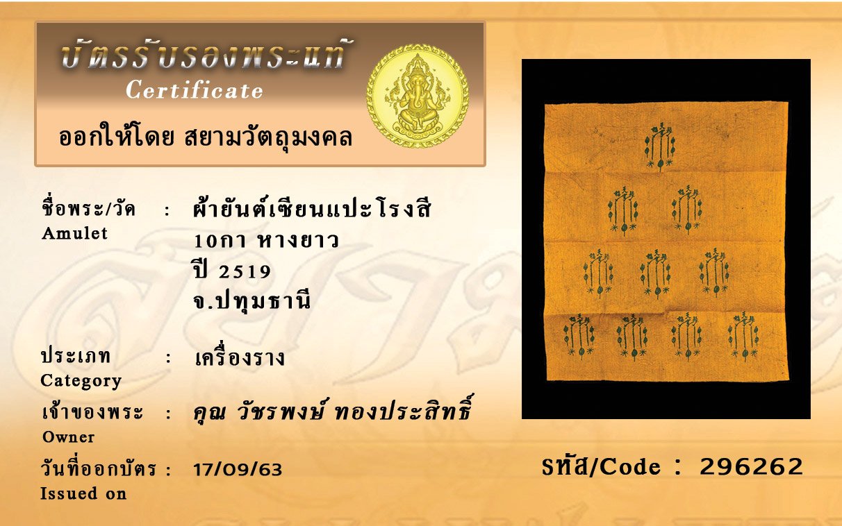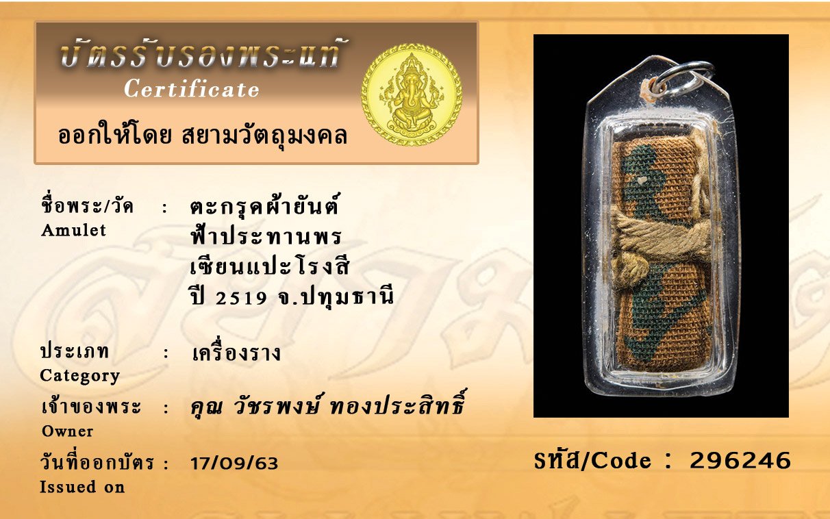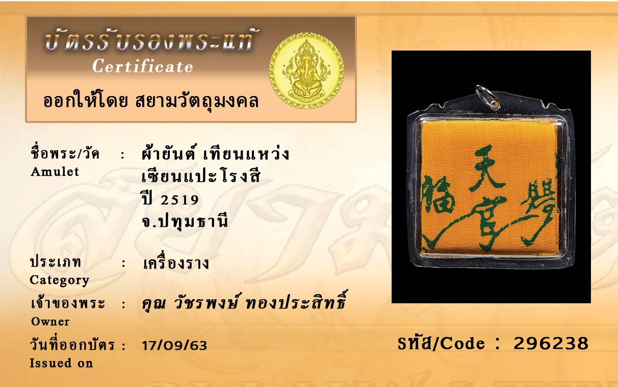 Certificate ค้นหาใบรับรองพระแท้