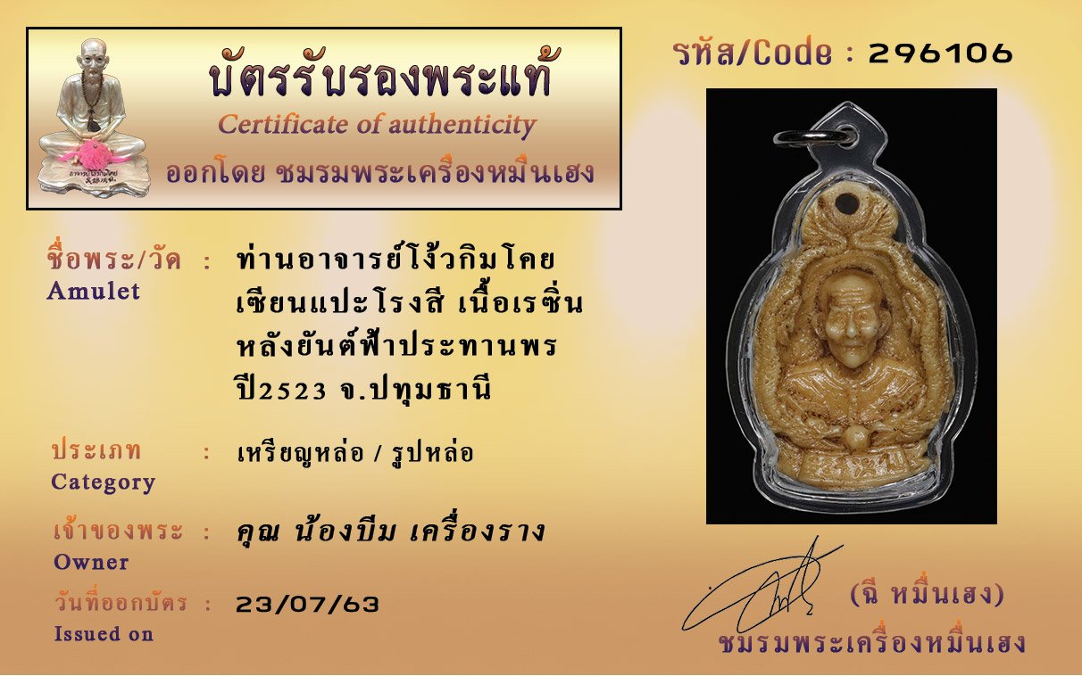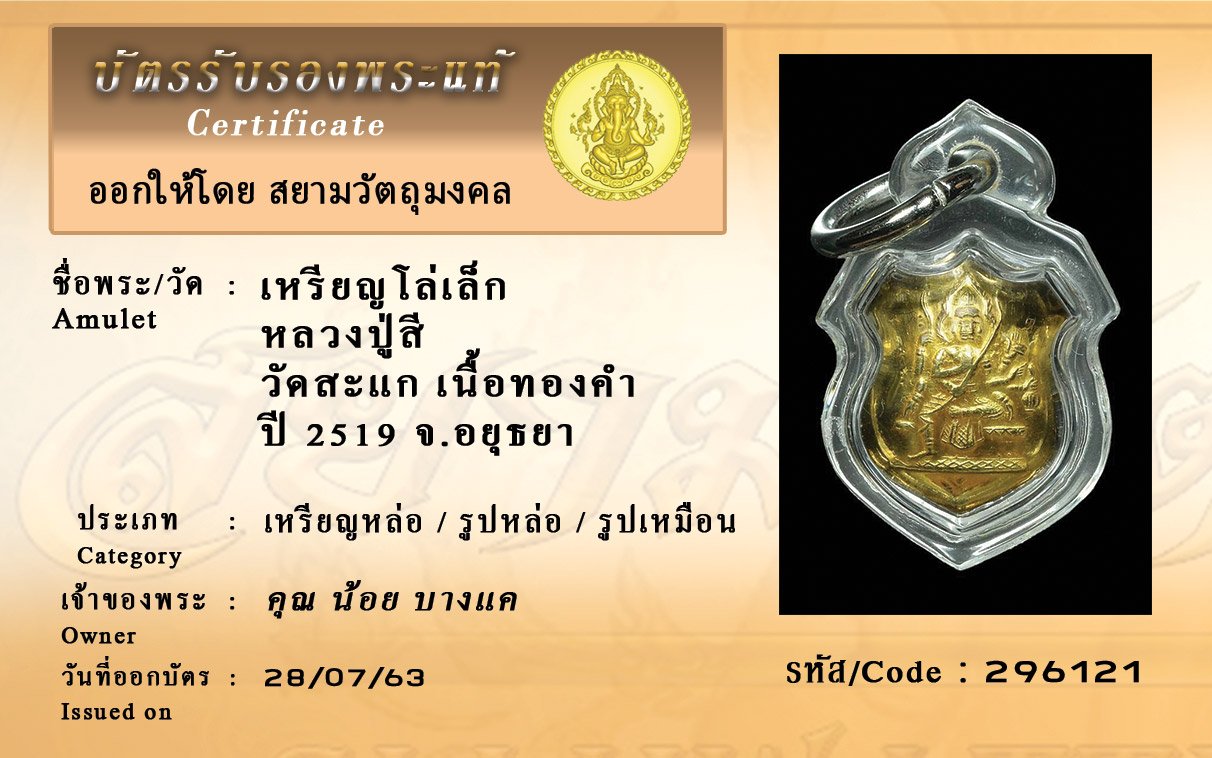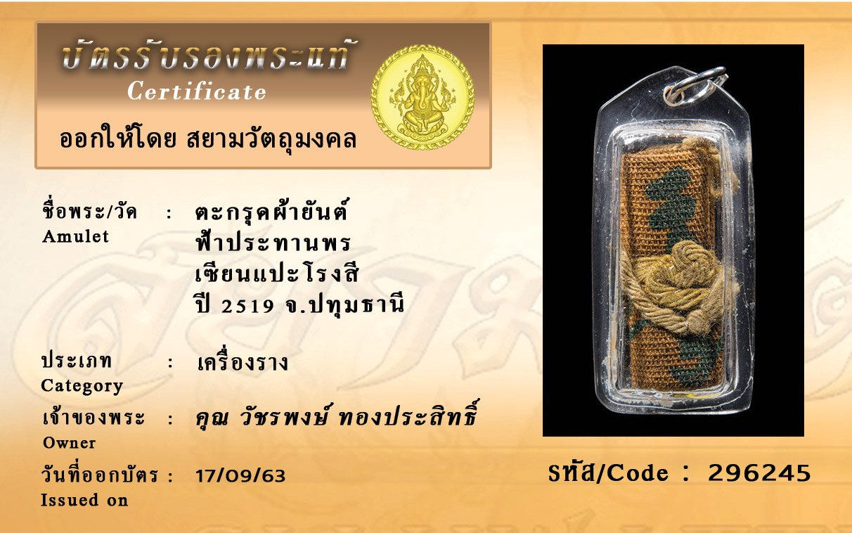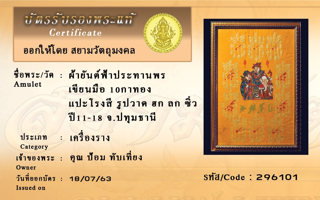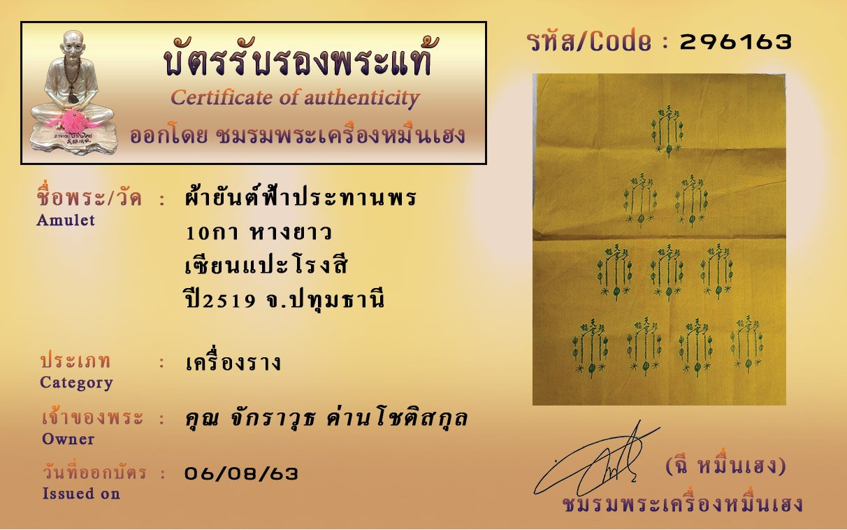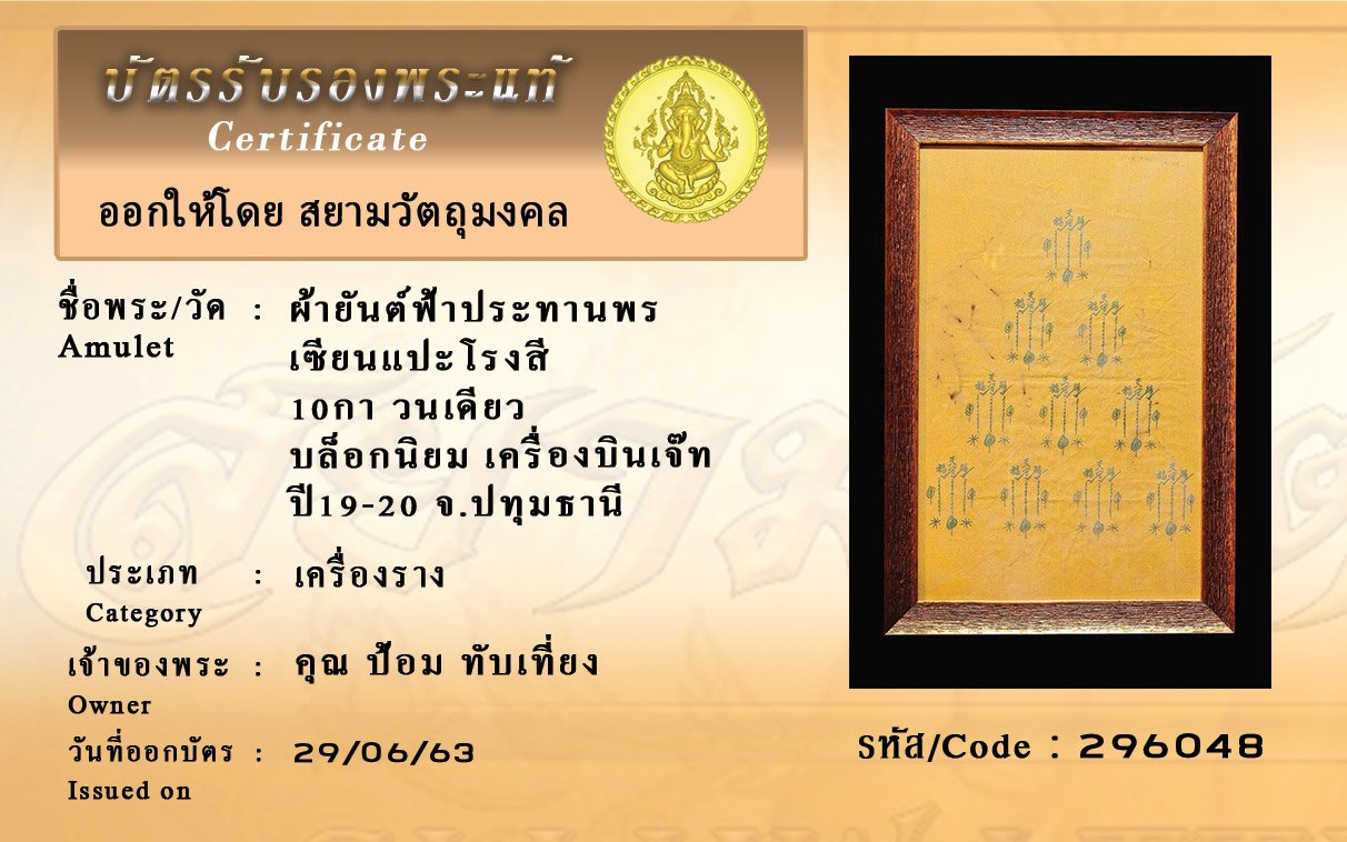 Certificate ค้นหาใบรับรองพระแท้