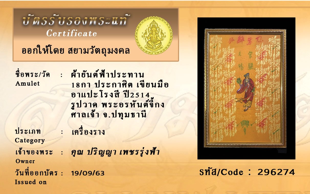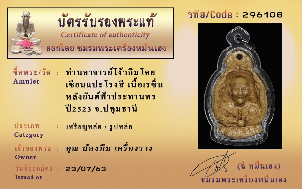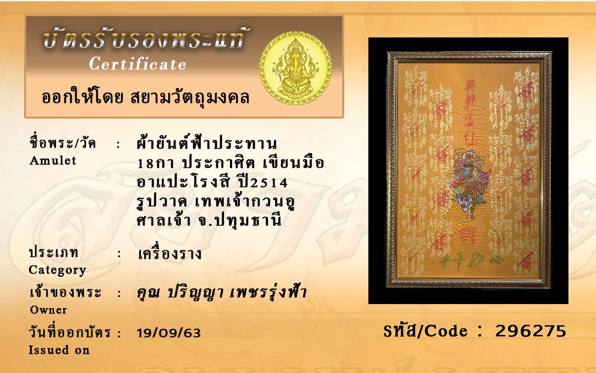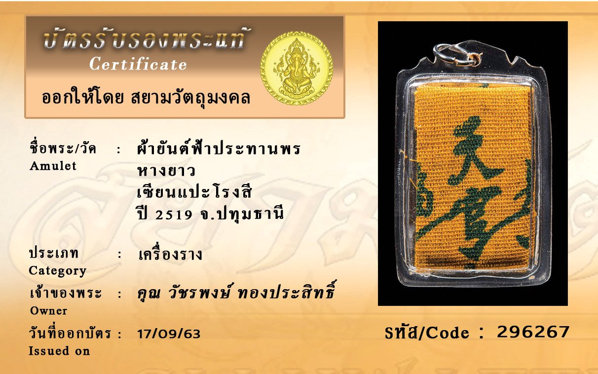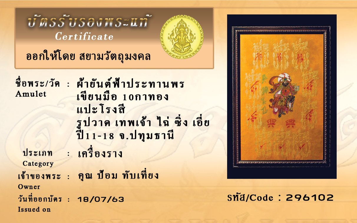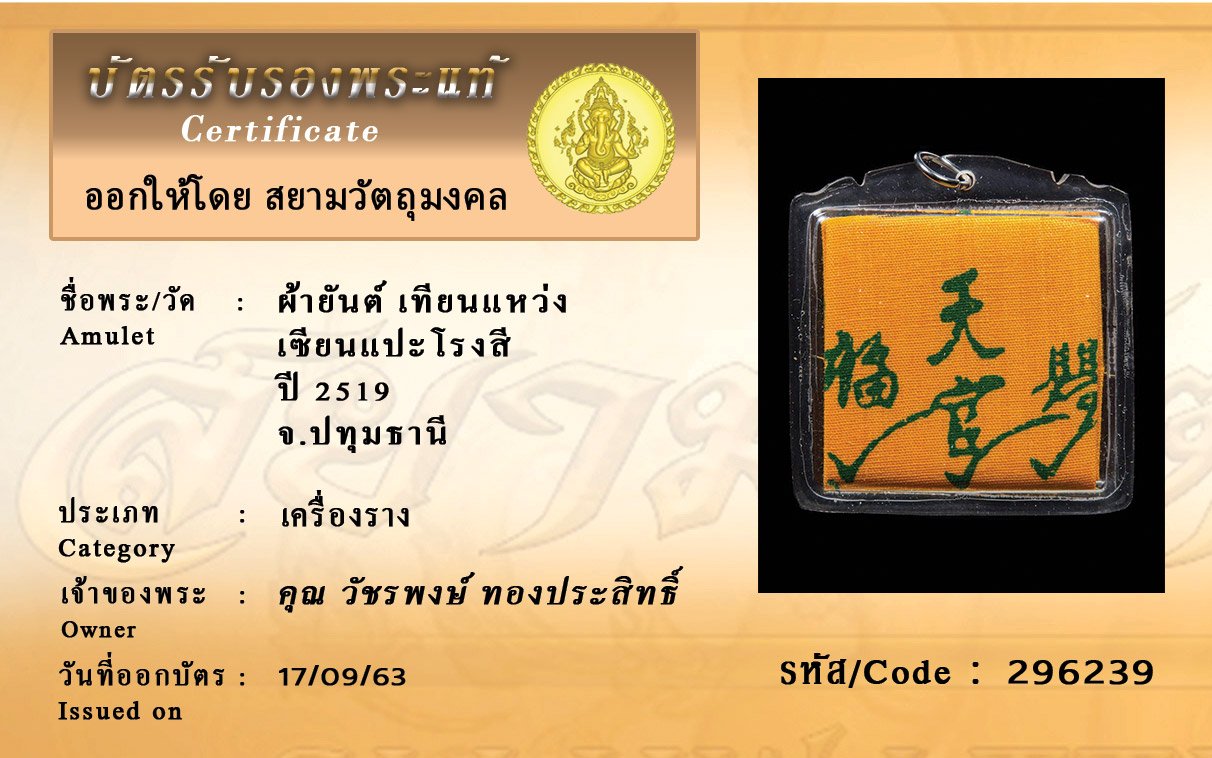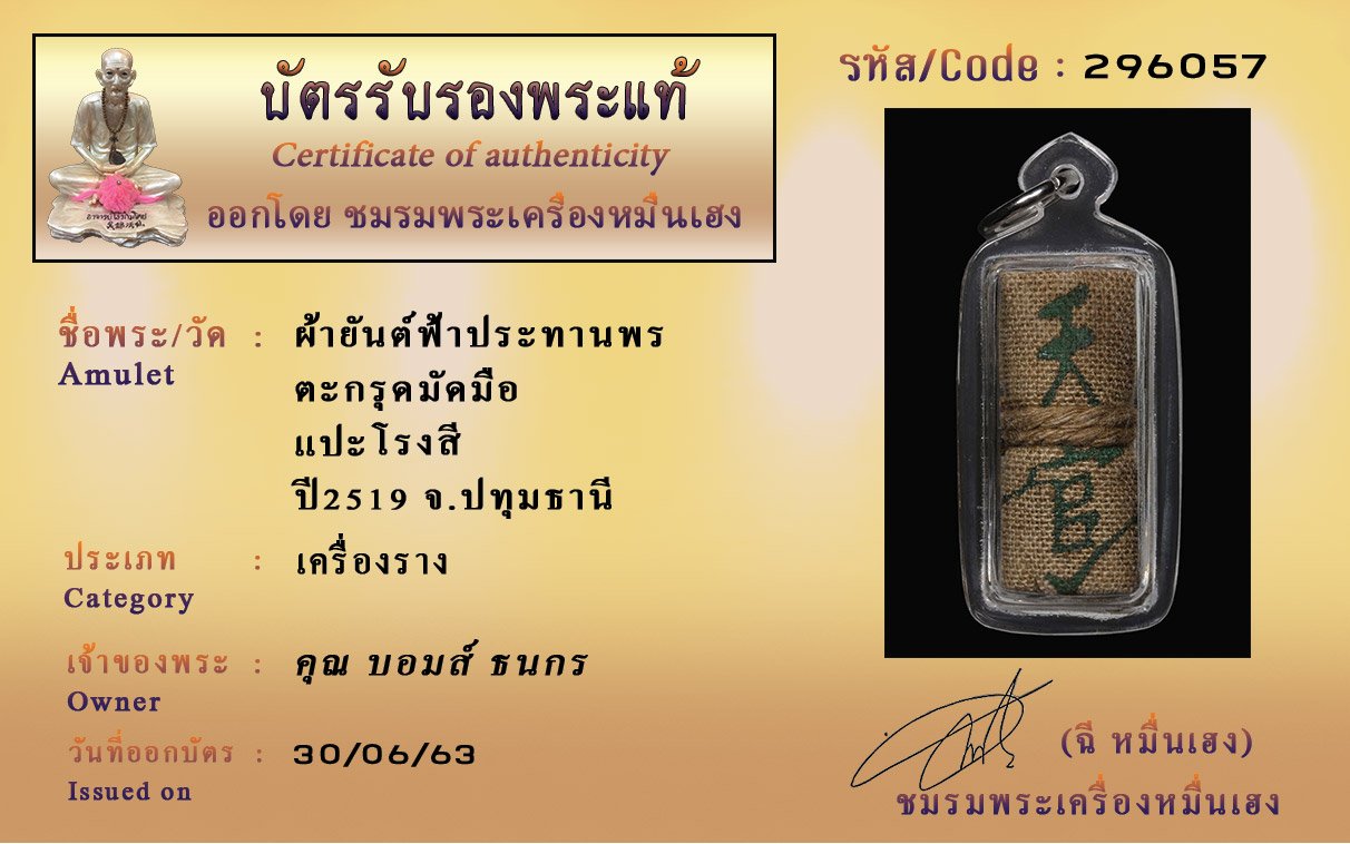 Certificate ค้นหาใบรับรองพระแท้