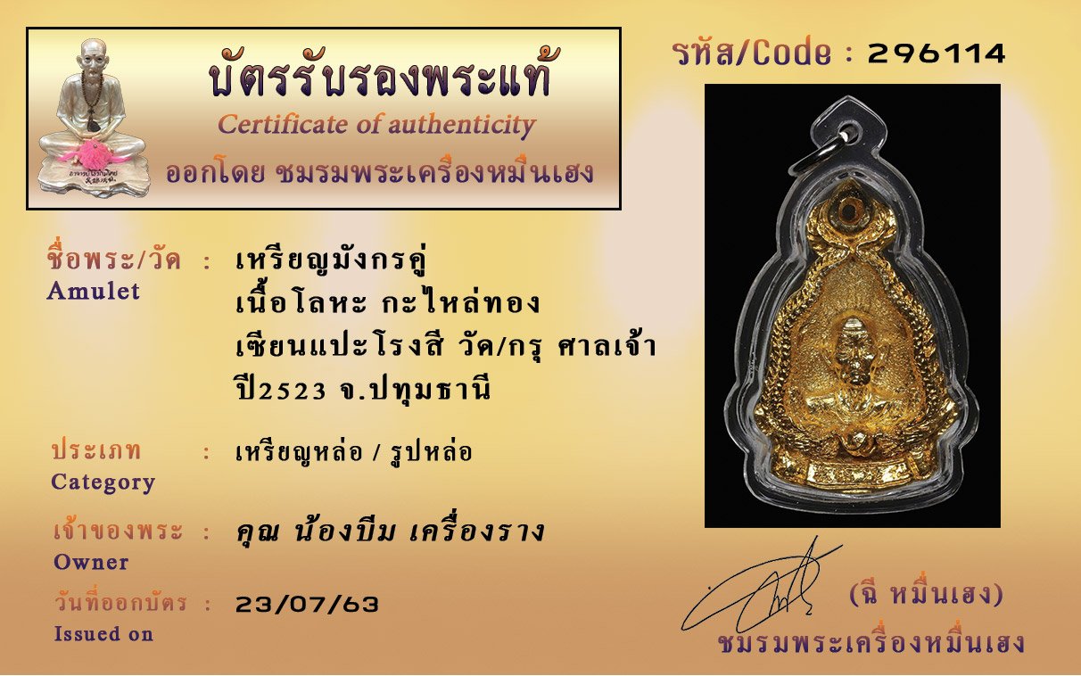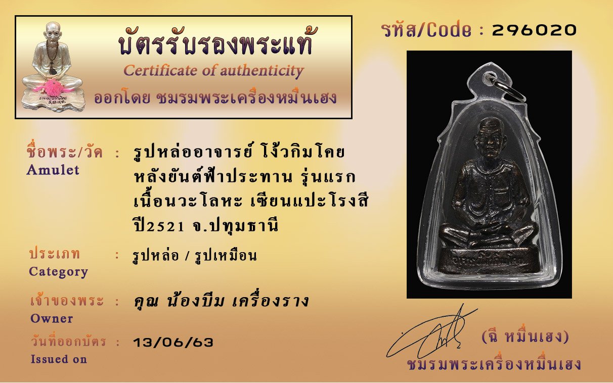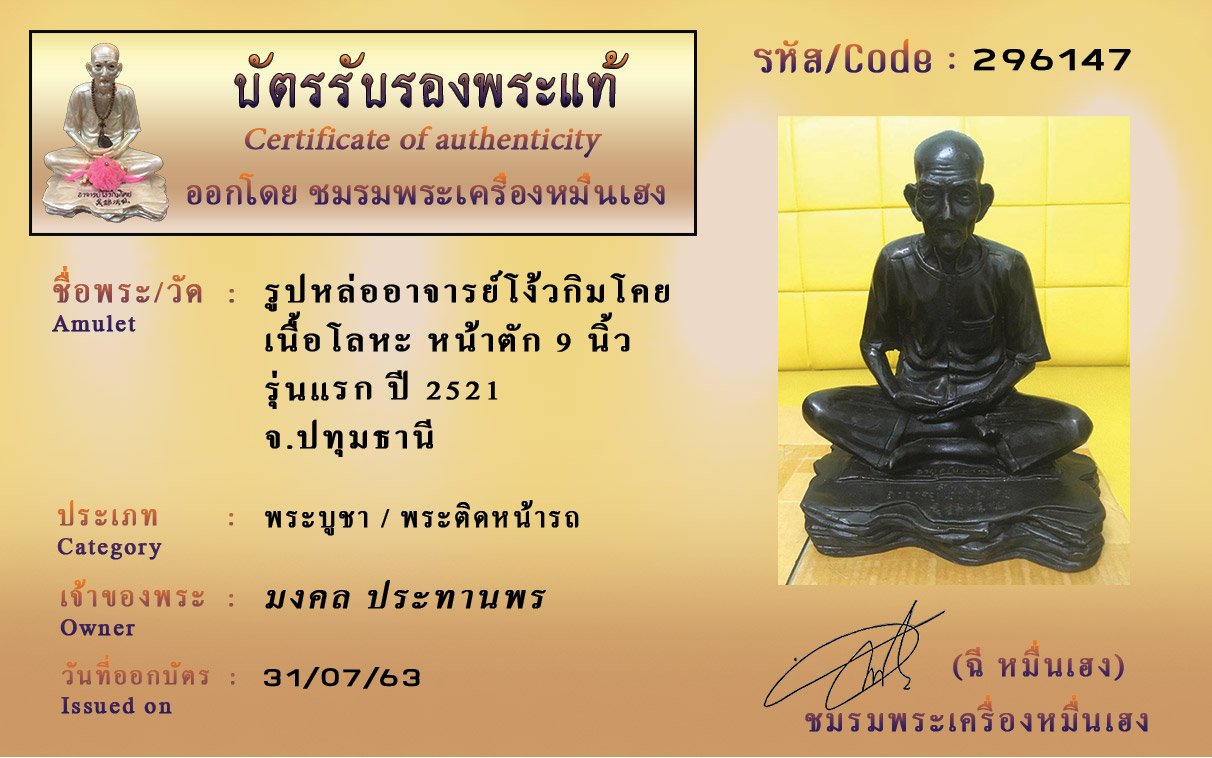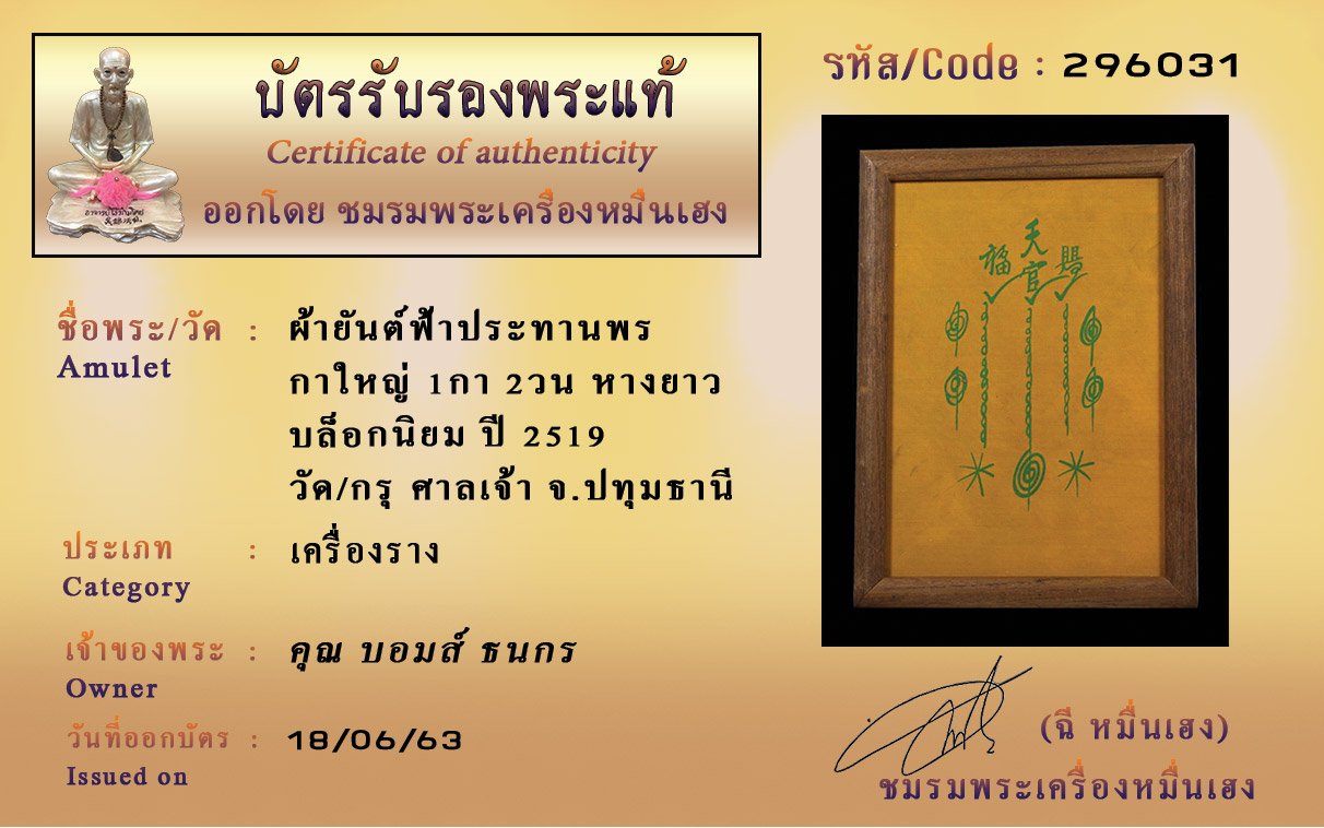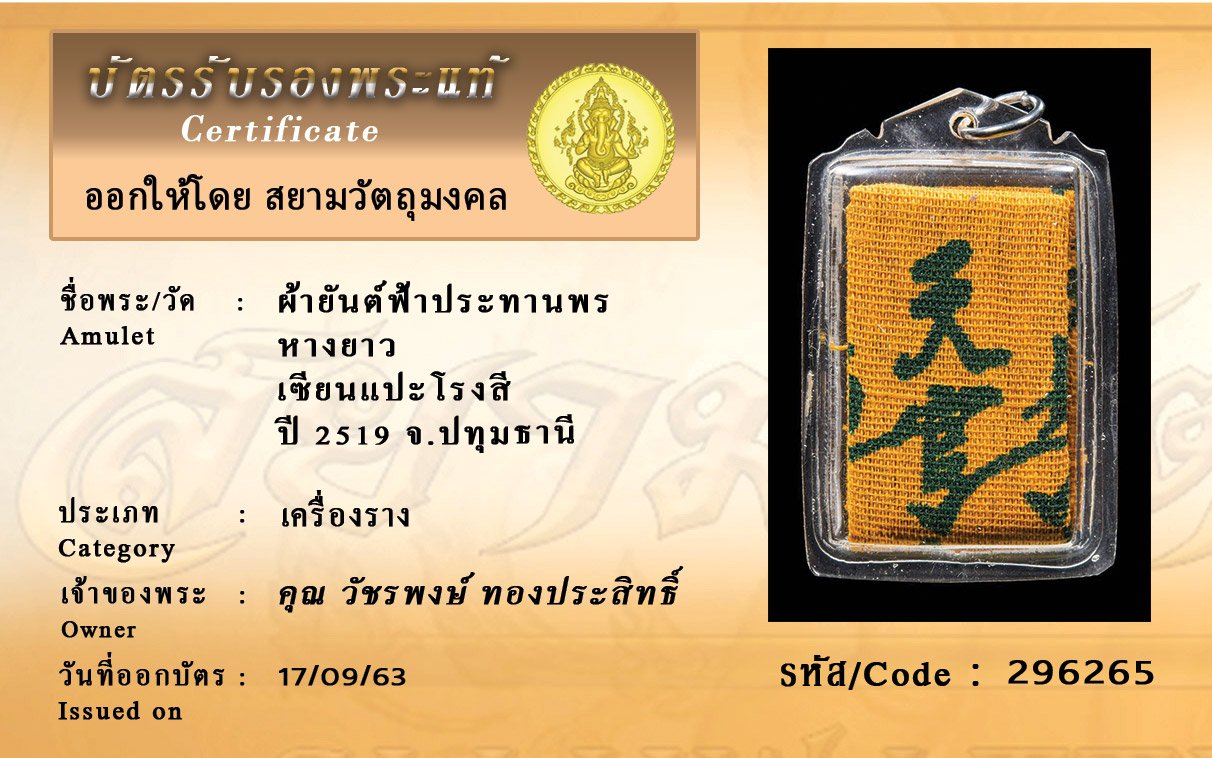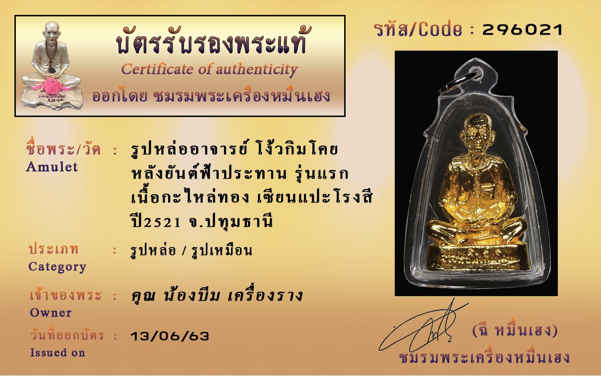 Certificate ค้นหาใบรับรองพระแท้