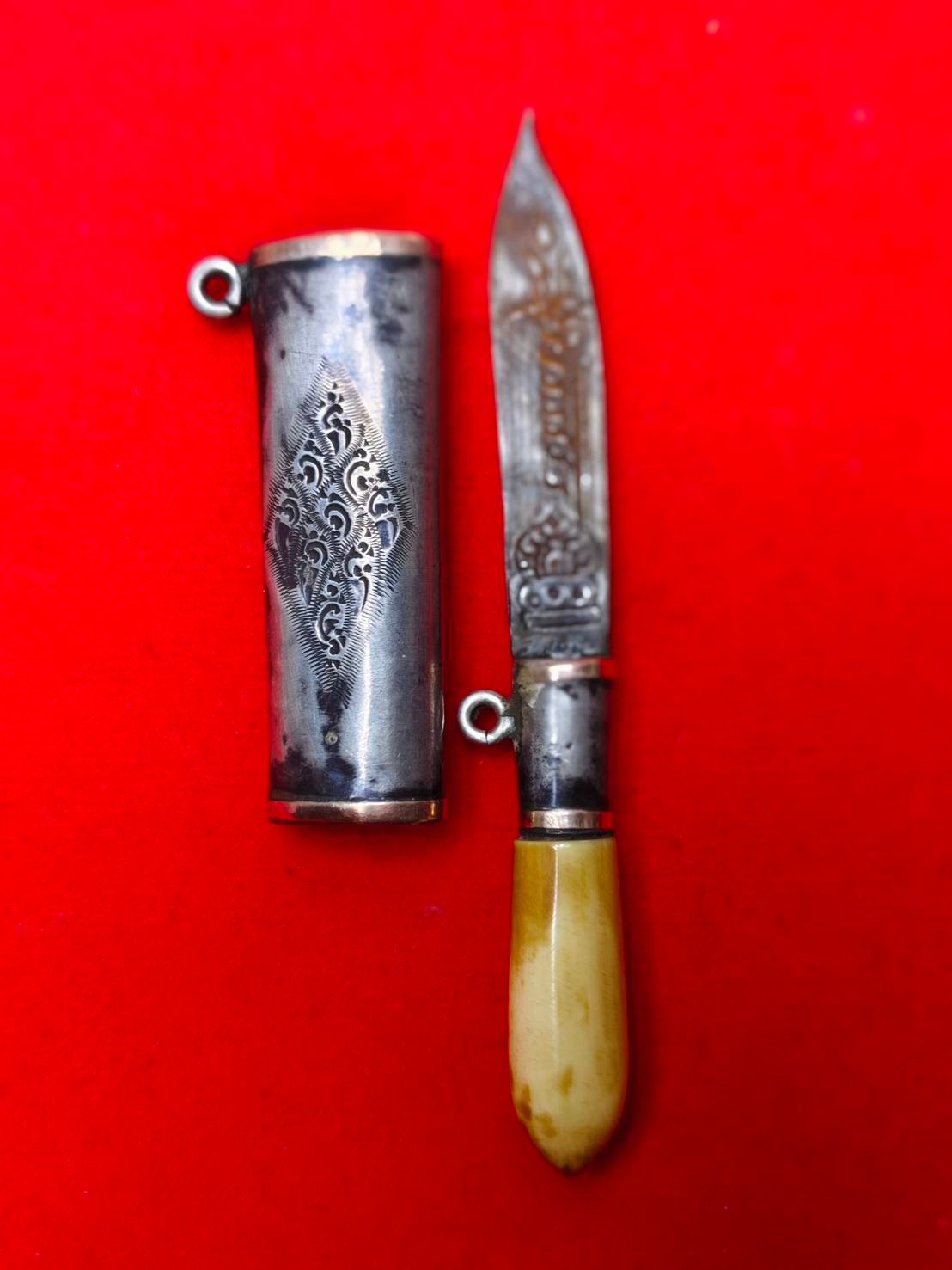 รหัสสินค้า : 304787 มีดหมอสาริกา หลวงพ่อเดิม (กรรมการ) ด้ามงา-ฝักงา แหนบเงินขั้นนาคตลอดเล่ม ใบมีดเนื้อโลหะ จัดสร้างปี 2470-2494 วัดหนองโพธิ์ จ.นครสวรรค์