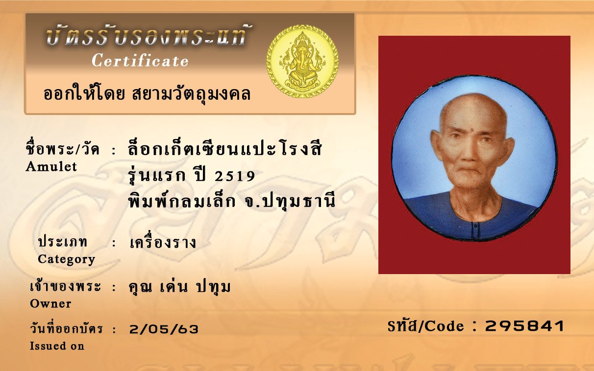 รหัสสินค้า : (295841) ล็อกเก็ตเซียนแปะโรงสี รุ่นแรก ปี 2519 พิมพ์กลมเล็ก จ.ปทุมธานี