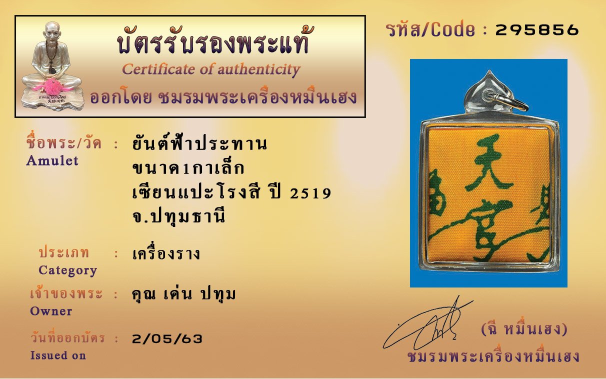 รหัสสินค้า : (295856) ยันต์ฟ้าประทาน เซียนแปะโรงสี ขนาด1กาเล็ก ปี พ.ศ 2519 จังหวัดปทุมธานี