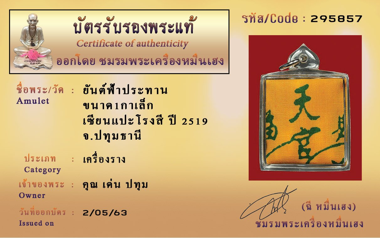 รหัสสินค้า : (295857) ยันต์ฟ้าประทาน เซียนแปะโรงสี ขนาด1กาเล็ก ปี พ.ศ 2519 จังหวัดปทุมธานี