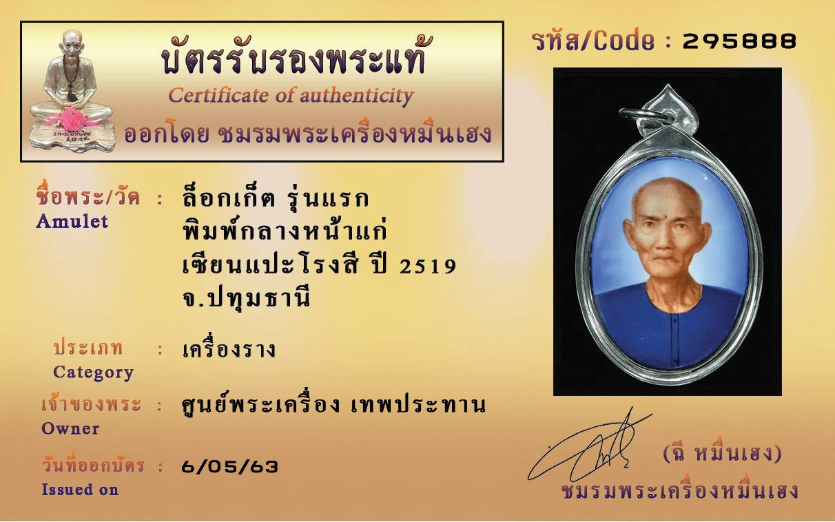 รหัสสินค้า : (295888) ล็อกเก็ตรุ่นแรก เซียนแปะโรงสี ปี 2519 พิมพ์กลางหน้าแก่ จังหวัดปทุมธานี