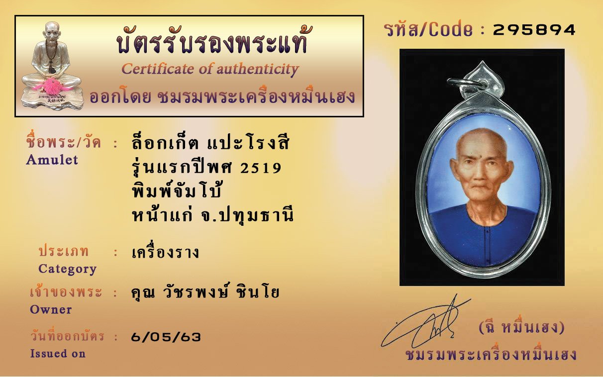 รหัสสินค้า : (295894) ล็อกเก็ตเซียนแปะโรงสี รุ่นแรก ปี 2519 พิมพ์จัมโบ้ หน้าแก่ จังหวัดปทุมธานี