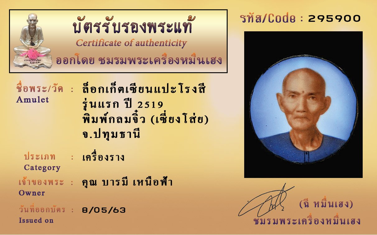 รหัสสินค้า : (295900) ล็อกเก็ตเซียนแปะโรงสี รุ่นแรก ปี 2519 พิมพ์กลมจิ๋ว (เซี่ยงโส่ย) จ.ปทุมธานี