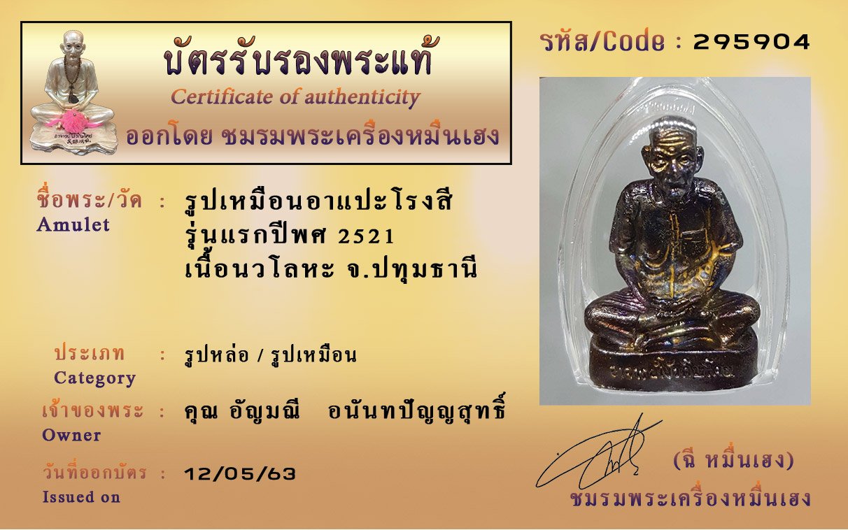 รหัสสินค้า : (295904) รูปเหมือนอาแปะโรงสีรุ่นแรกปีพศ 2521 เนื้อนวโลหะ จ.ปทุมธานี