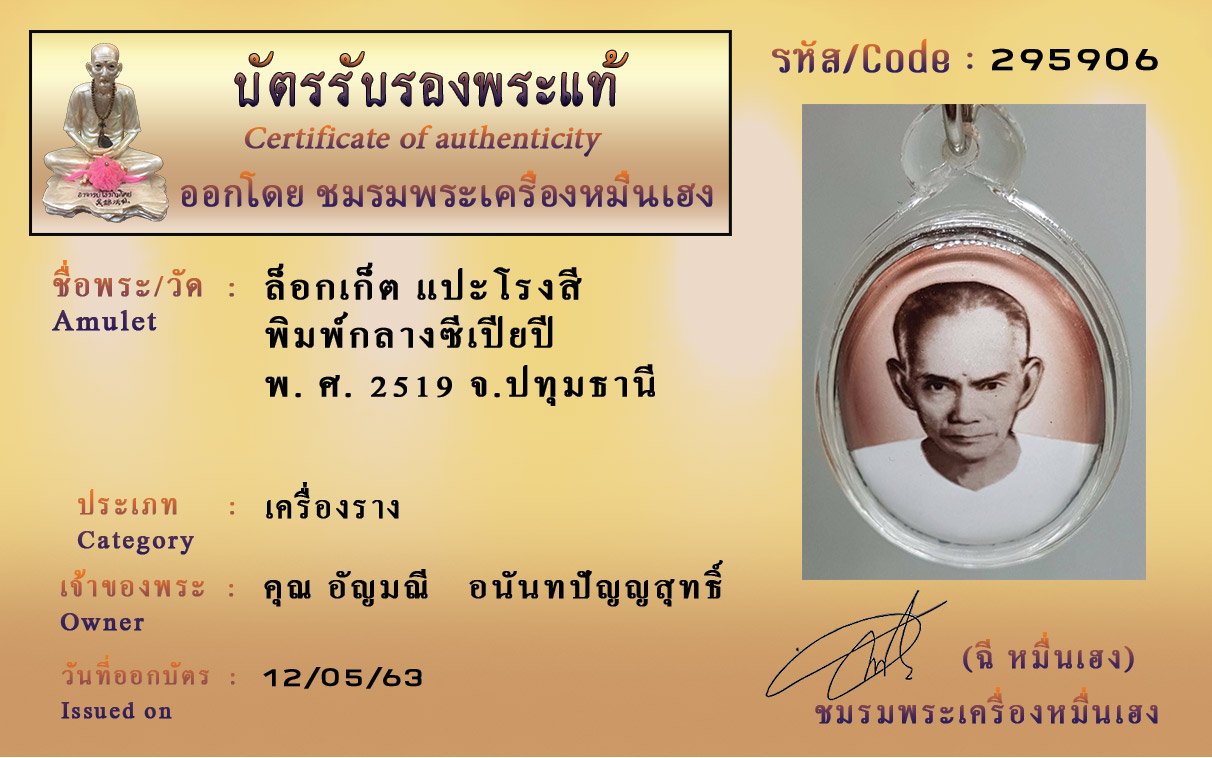 รหัสสินค้า : (295906) ล็อกเก็ต แปะโรงสี พิมพ์กลางซีเปียปี พ. ศ. 2519 จ.ปทุมธานี