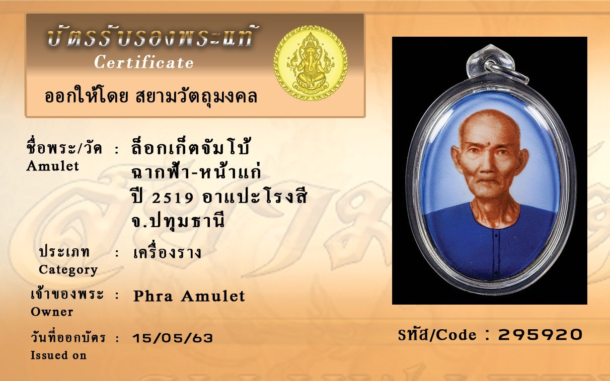 รหัสสินค้า : (295920) ล็อกเก็ตจัมโบ้ ฉากฟ้า-หน้าแก่ ปี 2519 อาแปะโรงสี จ.ปทุมธานี