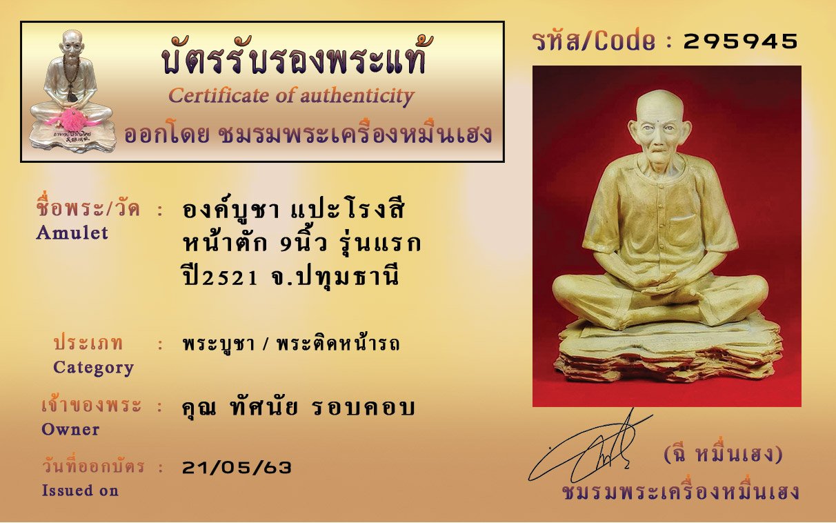 รหัสสินค้า : (295945) องค์บูชา แปะโรงสี หน้าตัก 9นิ้ว รุ่นแรก ปี2521 จ.ปทุมธานี