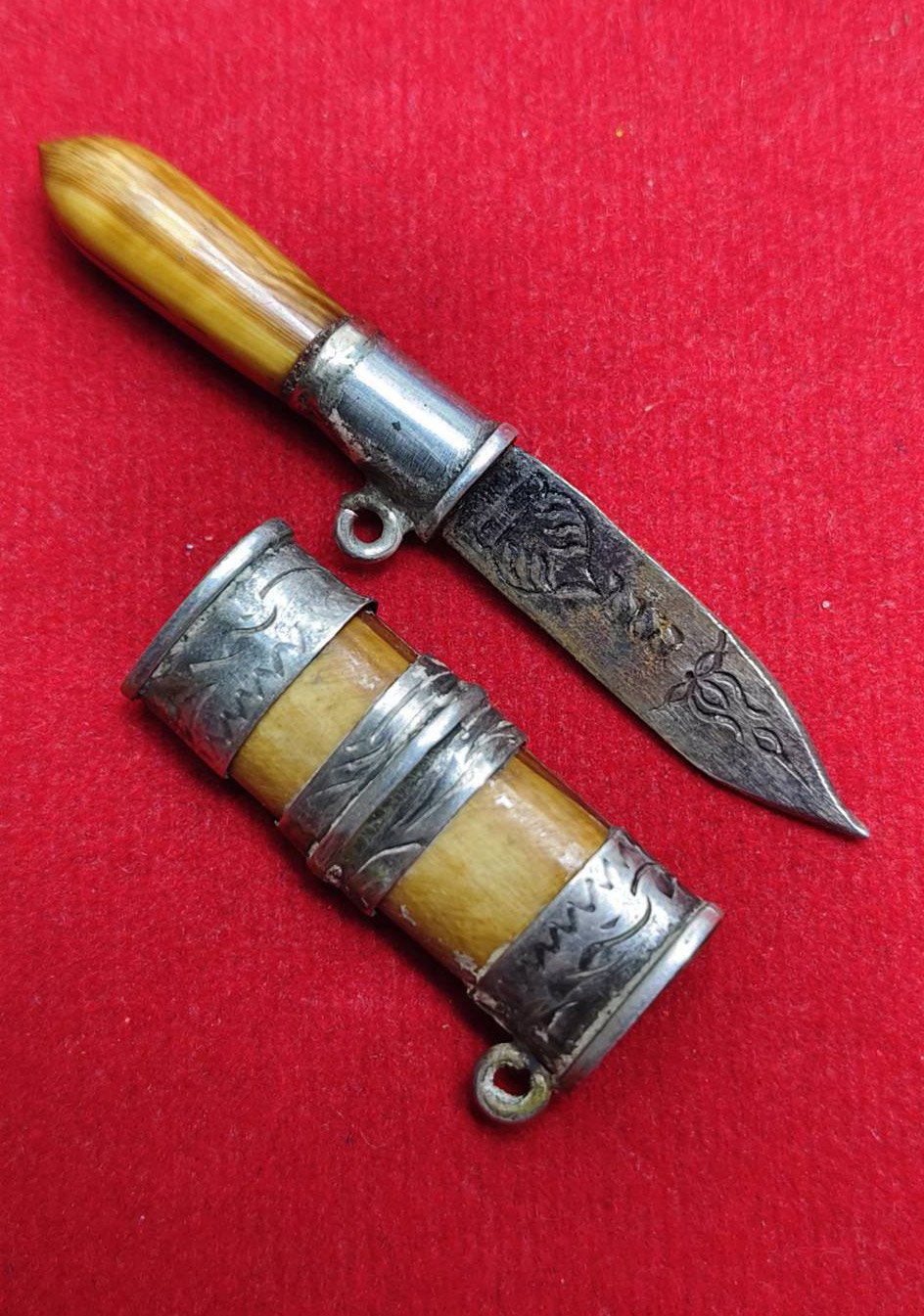 รหัสสินค้า : 306171 มีดสาริกา หมอหลวงพ่อเดิม ด้ามงา-ฝักงา แหนบเงินตลอดเล่ม ใบมีด เนื้อโลหะ จัดสร้างปี 2470-2494 วัดหนองโพธิ์จังหวัด จ.นครสวรรค์